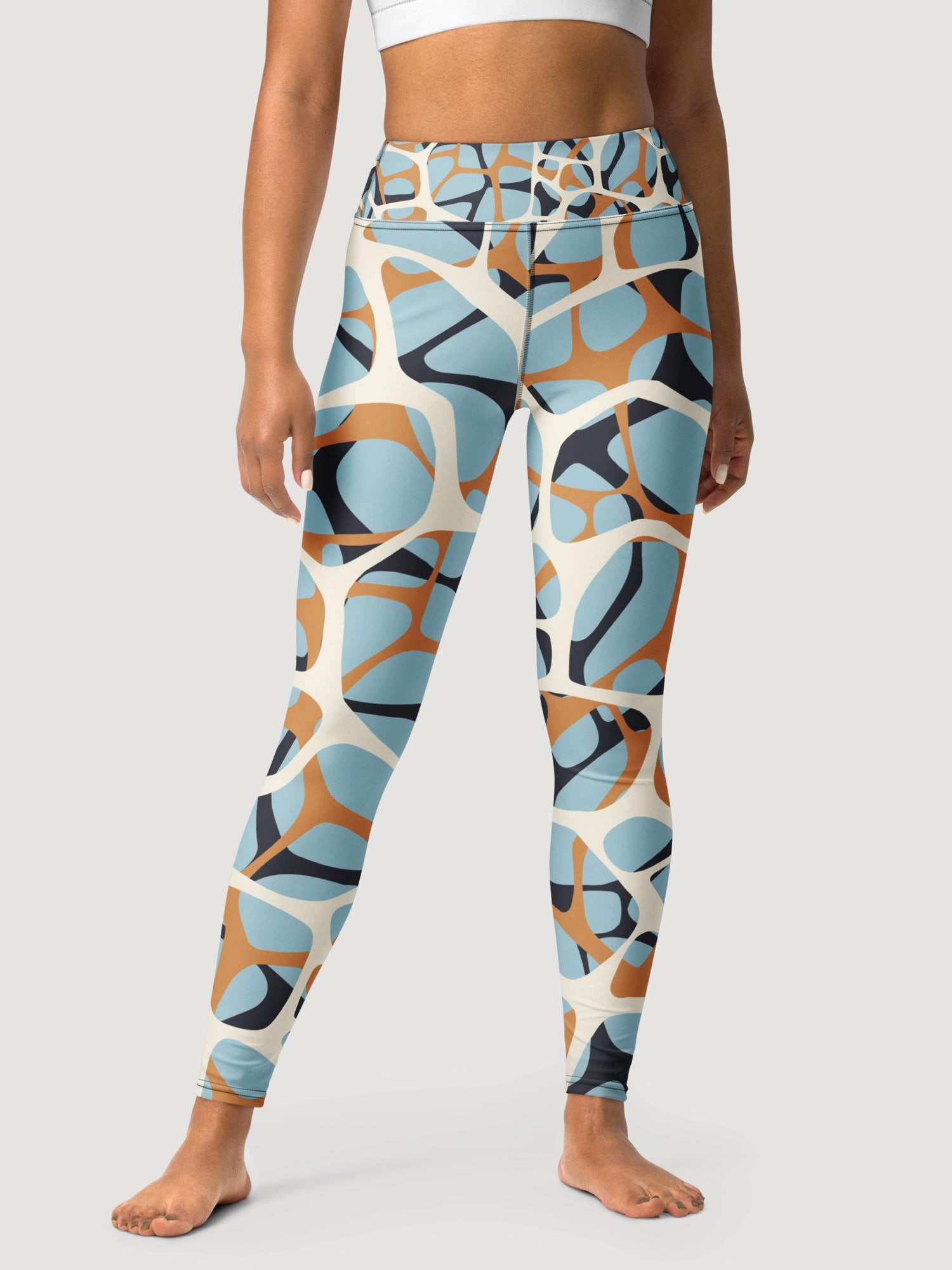 Super soft, stretchy, and comfortable yoga leggings. • 82% polyester, 18% elastane • Four-way stretch, meaning the fabric expands and contracts lengthwise and crosswise • Made from a microfiber yarn that makes the item smooth and comfortable • Raised waistband • Precision cut and hand-stitched after printing