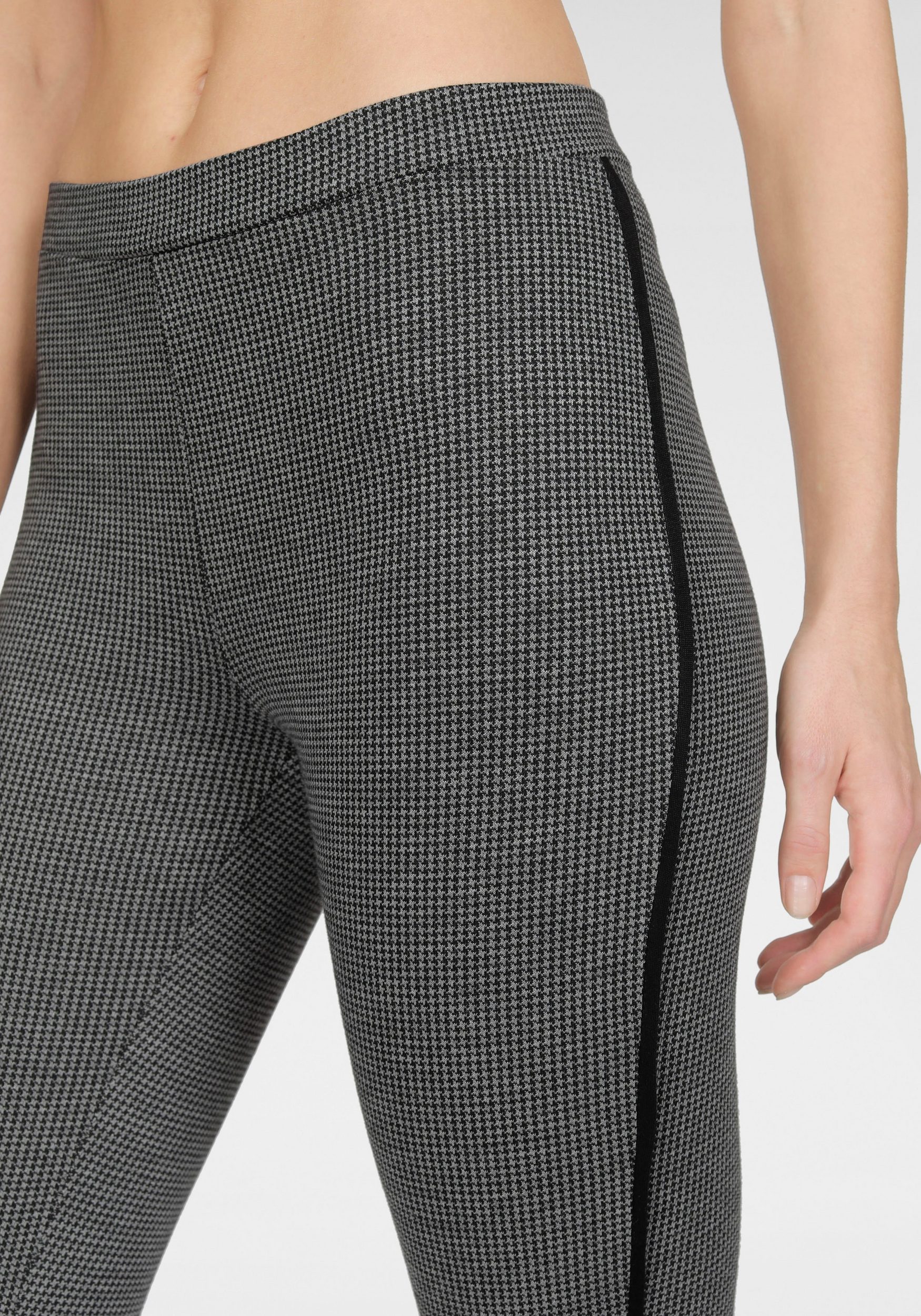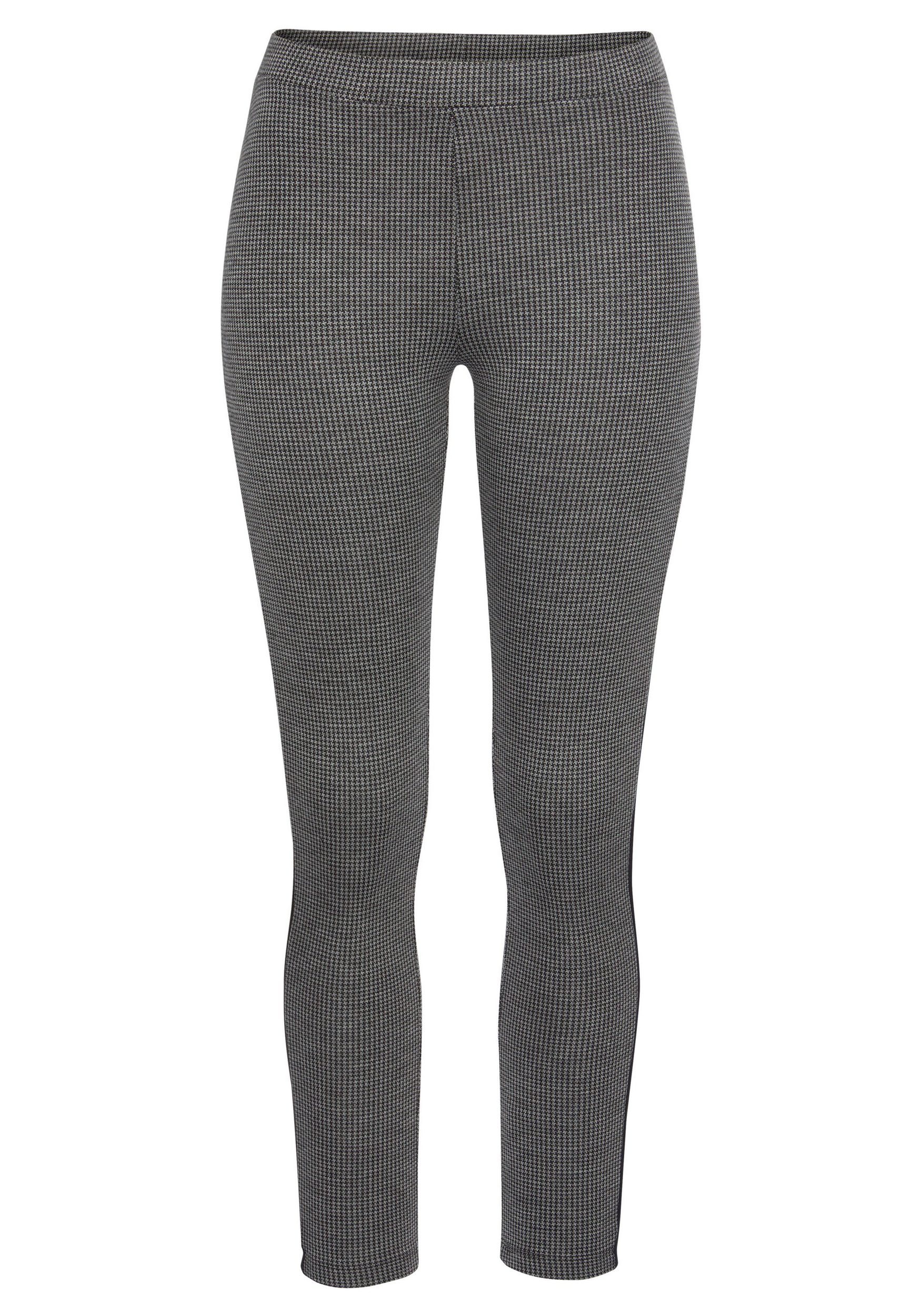 Lascana’s sophisticated leggings are the superstar of the day. Their fine, soft fabric with a cotton content shows you what great comfort feels like. The lively houndstooth pattern creates an exciting look and is most impressive when paired with a cool, simple top. The narrow side stripes create a great figure and are a real eye-catcher. Daring to try patterns is worth it – in Lascana’s leggings.