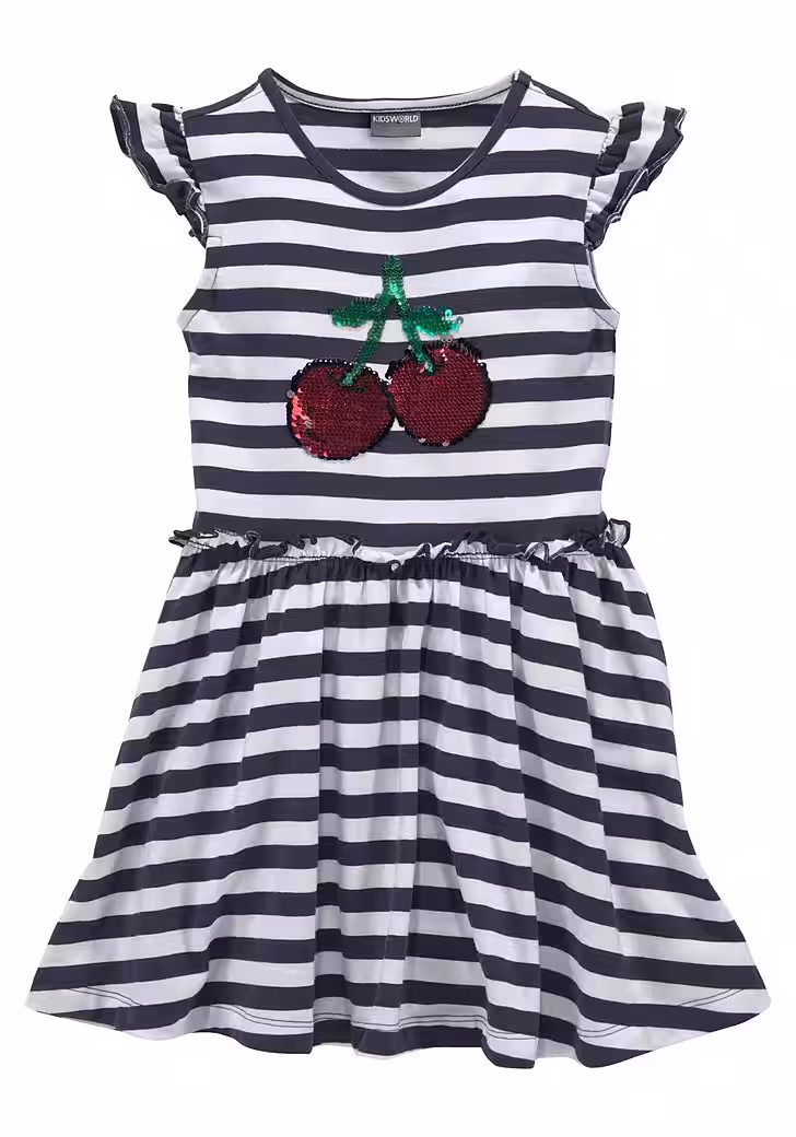 - Fashionable jersey dress with cute wing sleeves and fruit-shaped reversible sequins