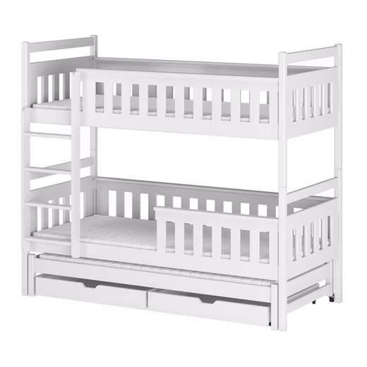 Safety is our top priority. Our bed is made of FSC-certified solid pine and meets the highest standards. The paints used are water-based, child-friendly, and odorless. They are also saliva- and leak-proof, so you don’t have to worry about your child’s health. Our bed is designed to support up to 100 kg on each sleeping surface, giving you added peace of mind.