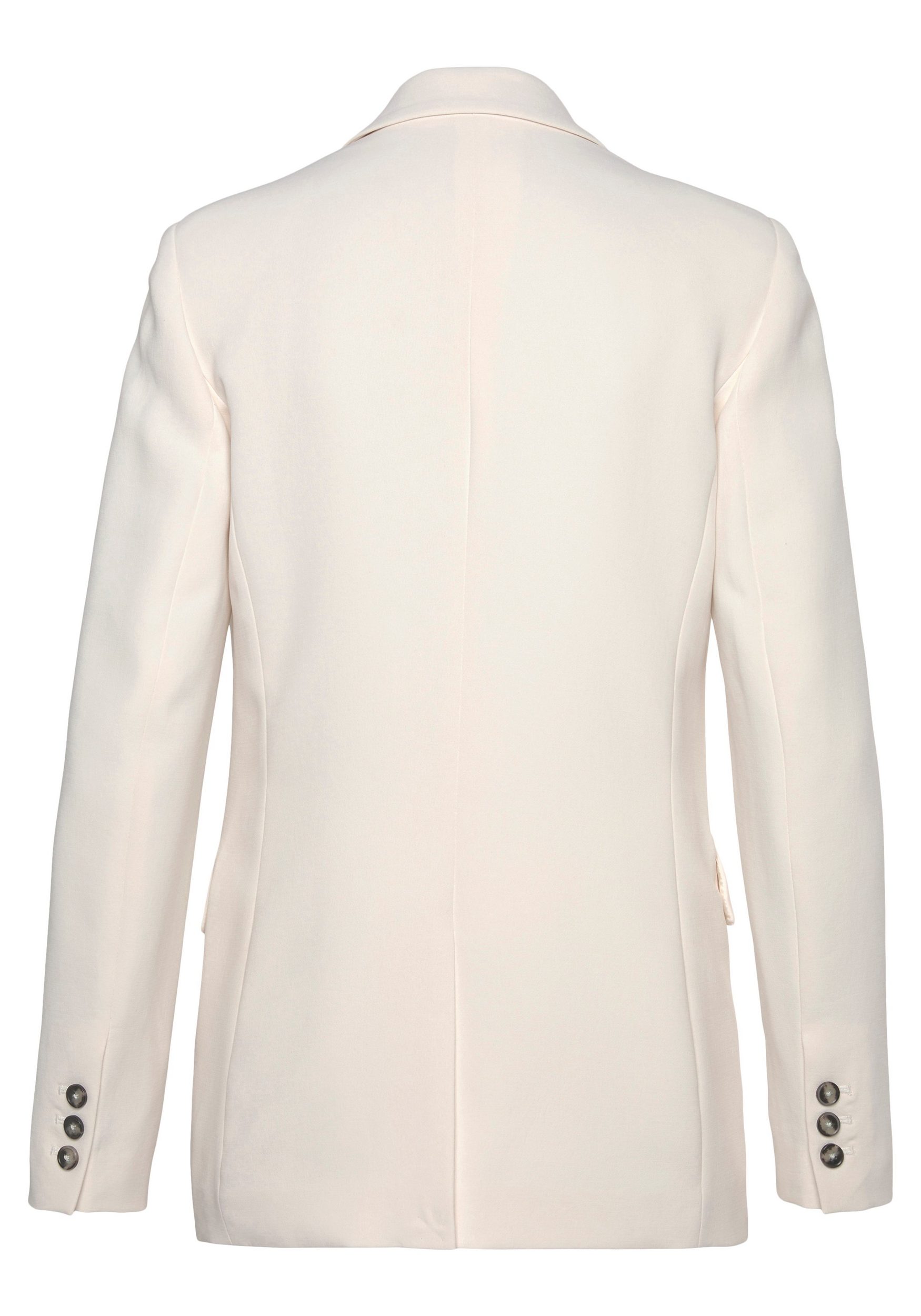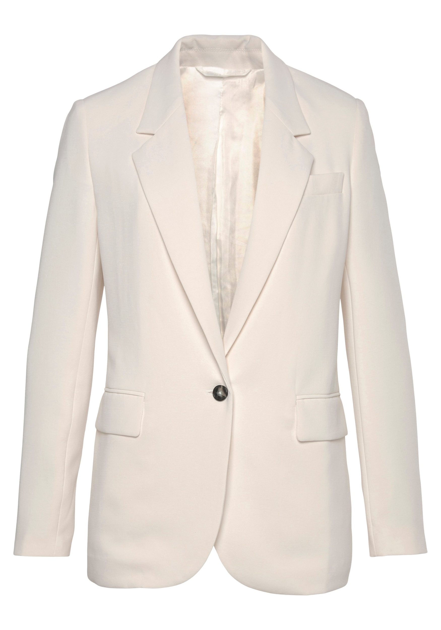 Effortlessly enhances casual outfits and stylishly complements elegant looks with its classic design: this blazer from Lascana. Timeless elements such as the notched lapel and two flap pockets characterize the smart appeal of this long blazer. The one-button silhouette accentuates the waist and creates a flattering fit that highlights your figure. The single-breasted jacket is slightly oversized and features a back slit, giving it a modern touch while ensuring a comfortable fit. Whether it’s a formal business meeting, a relaxed weekend getaway, or an evening event, this blazer from Lascana will always accompany you in style.