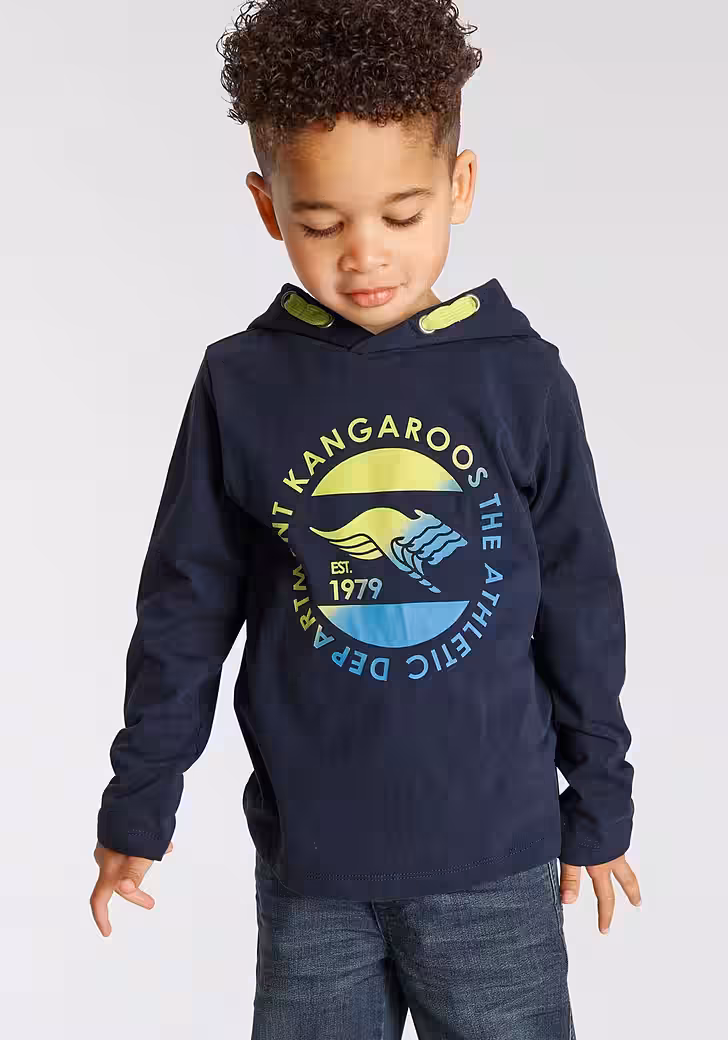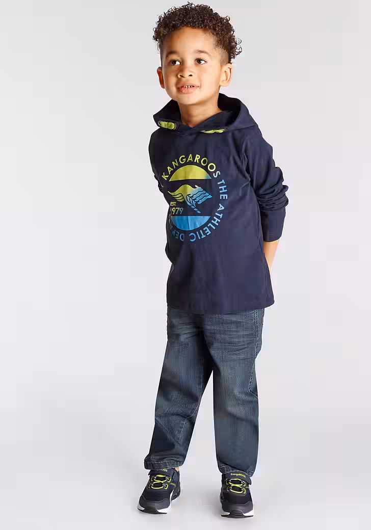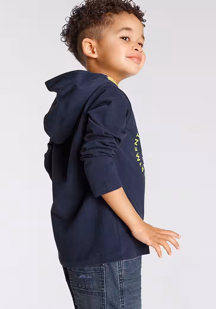 Das Long sleeve shirt »shirt for little boys« from KangaROOS is a stylish essential to find your personal style. The print makes it look trendy and unusual. A hood is attached to this shirt. She is lined and therefore warm and cozy. It is hip-length and has a basic cut so that freedom of movement does not suffer.