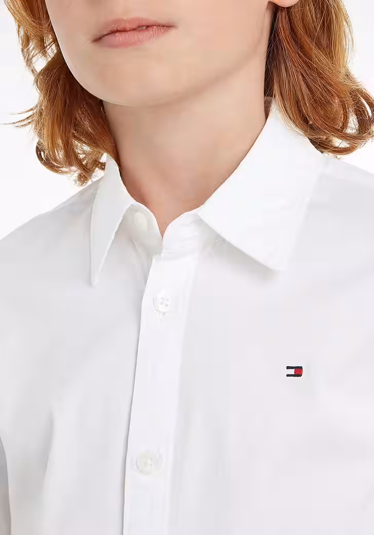 Does your son like to make himself fancy for festive occasions? Then he certainly likes to wear the long sleeve shirt »SOLID STRETCH POPLIN SHIRT L/S« by Tommy Hilfiger. Thanks to the practical button placket, putting on and taking off is easy and the start of the day is relaxed. The normal to narrow cut brings a comfortable fit. Beautiful stretchy: It gives way and is comfortable while playing and romping in the garden.