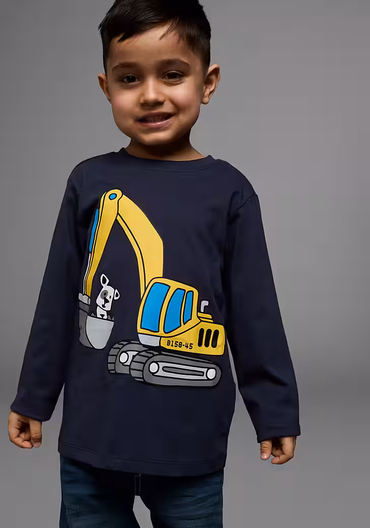 Das Long-sleeved shirt »DOG WITH EXCAVATOR« from KIDSWORLD is an uncomplicated answer to the urgent question “What should I wear?”. The print makes it look stylish and cool. The shirt has a crew neck with ribbed cuffs and is basic cut so that comfort is not neglected.