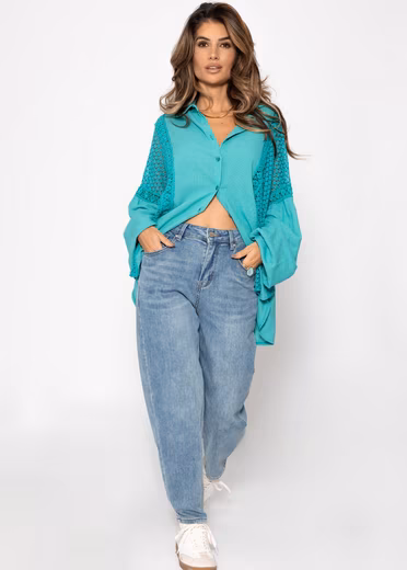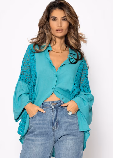 - DESIGN: This blouse combines feminine elegance with romantic lace inserts and a flowing oversized cut that gently hugs the silhouette.