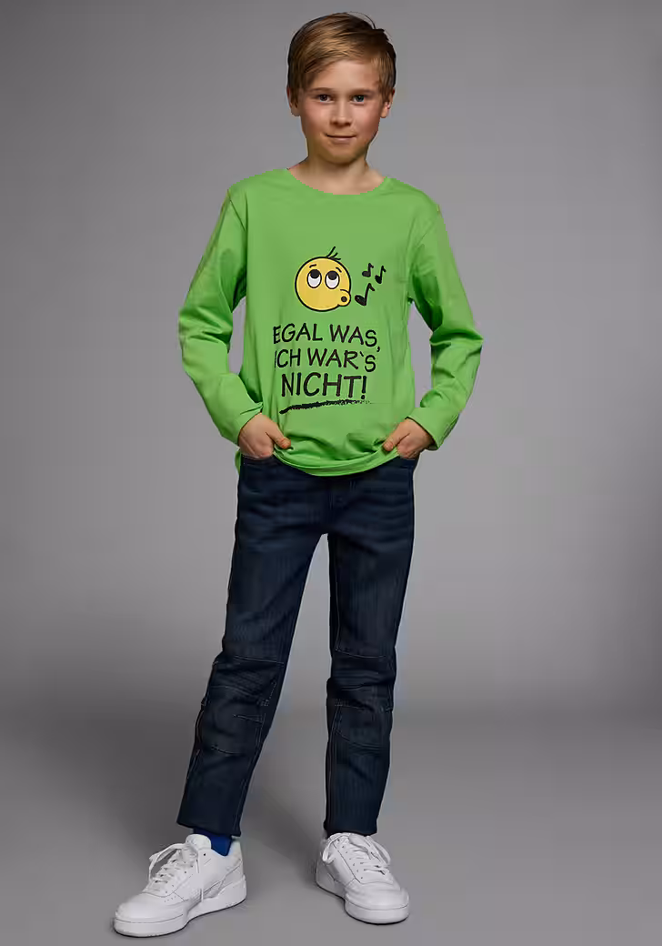 Das Long-sleeved shirt »NO MATTER WHAT, IT WASN’T ME!« by KIDSWORLD is a stylish essential to find your personal style. The print looks stylish and cool. The shirt has a crew neck with ribbed cuffs and is basic cut so that freedom of movement does not suffer.