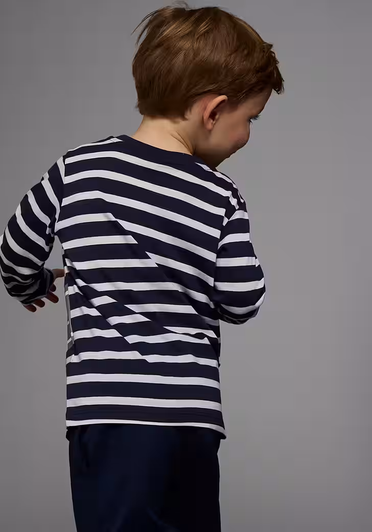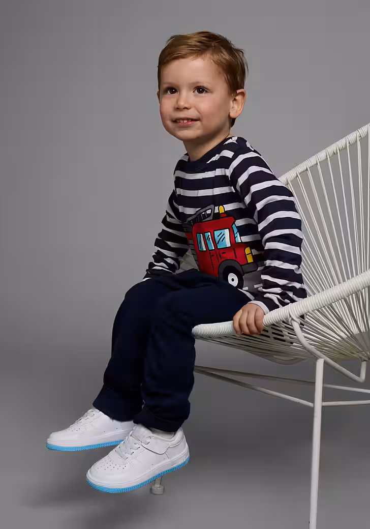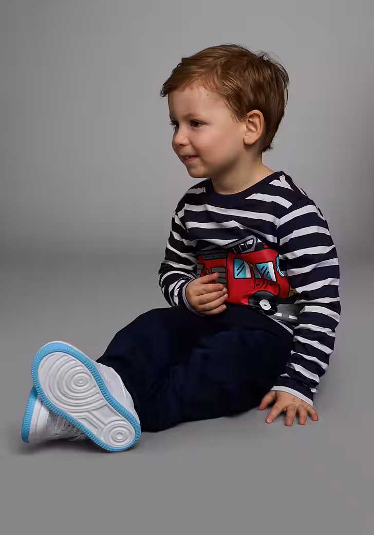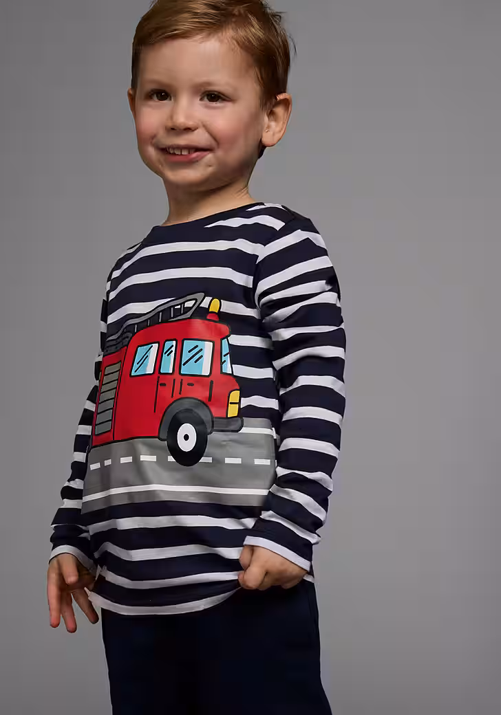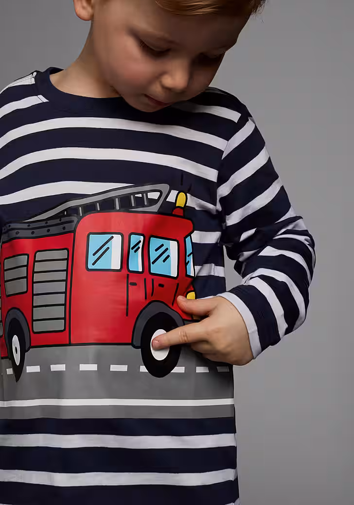 New outfits can be used with this Long-sleeved shirt »TATÜ TATA the fire department is here« from KIDSWORLD combine very easily. Because the long-sleeved shirt in a striped design is more than a cool basic for leisure looks. The design brings freshness and spice into the overall picture. The print makes it look trendy and unusual. The shirt has a crew neck with ribbed cuffs and is basic cut so that comfort is not neglected.