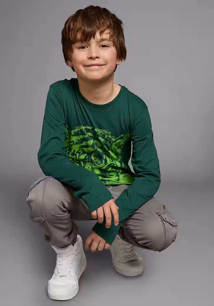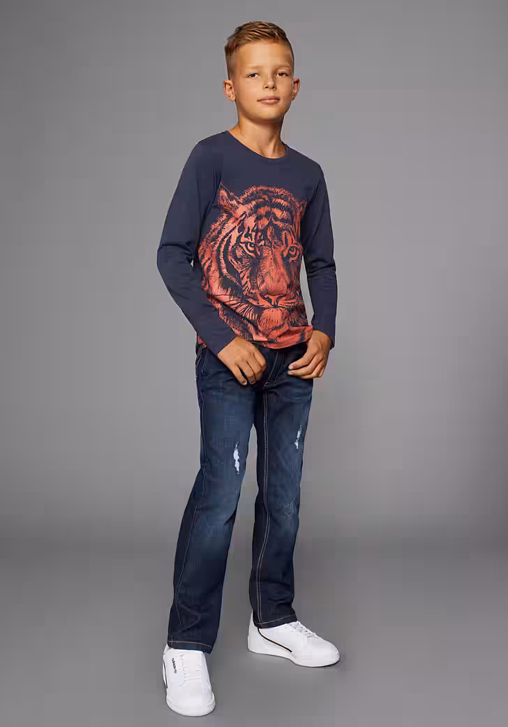 Trying is about copying: With this Long sleeve shirt »TIGER – print« from KIDSWORLD teens invent their own style. The print looks trendy and unusual. The shirt has a crew neck with ribbed cuffs and is basic cut so that freedom of movement does not suffer.