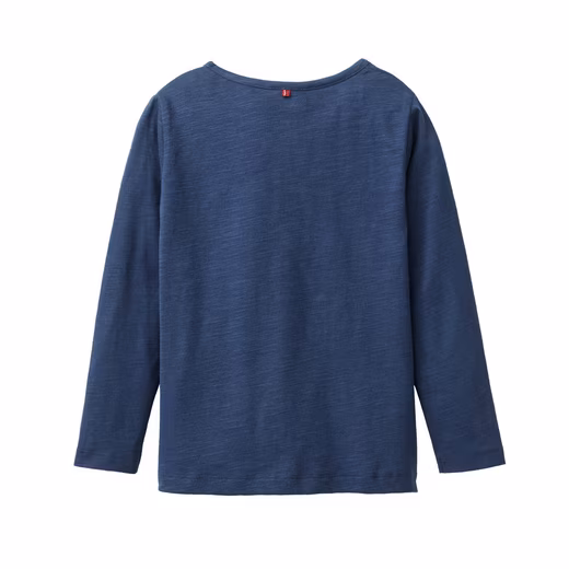 • Long-sleeved shirt in indigo blue with motif and appliqué “Dinosaurs”