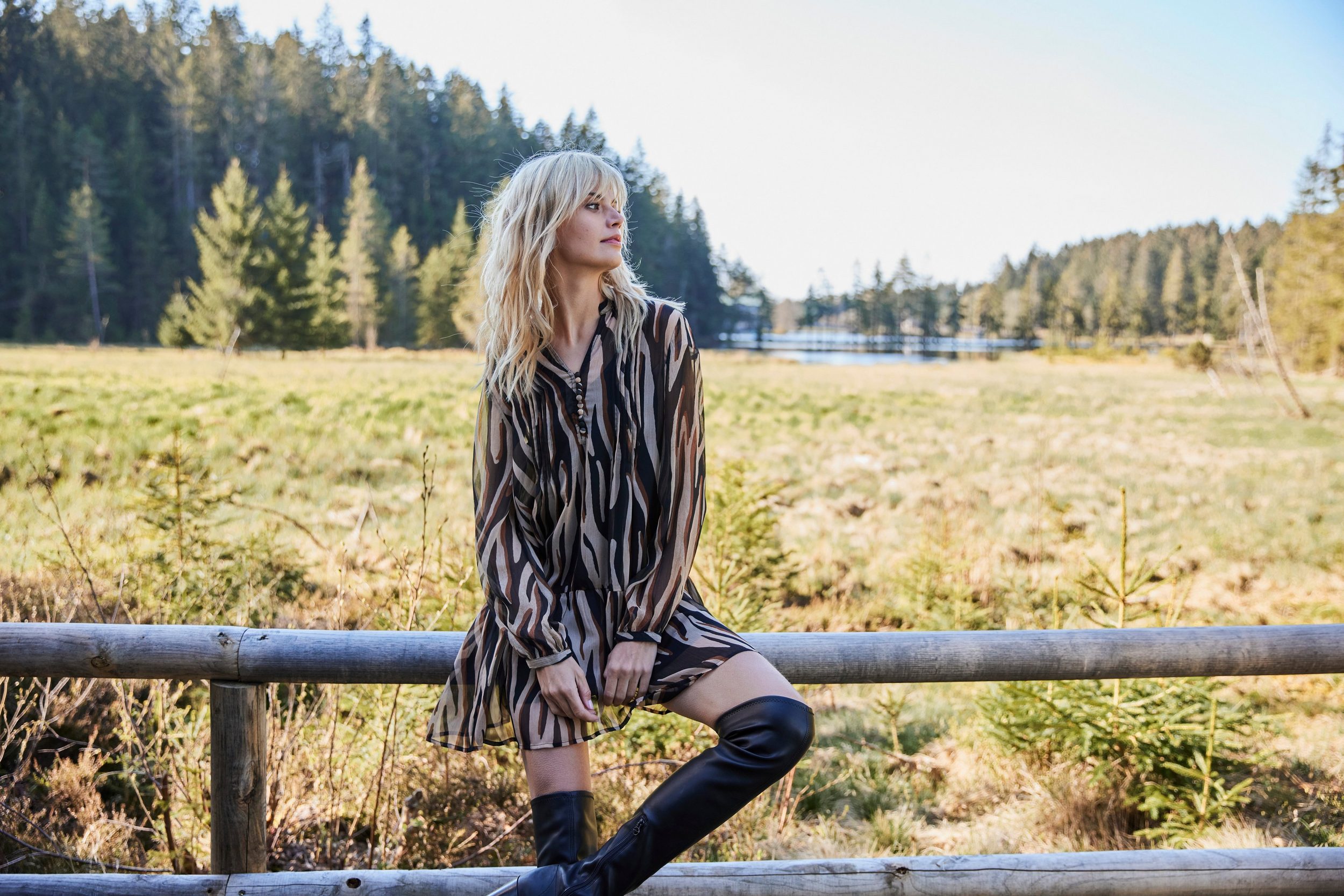 - Eye-catcher: fabric-covered buttons at the neckline and piping decoration