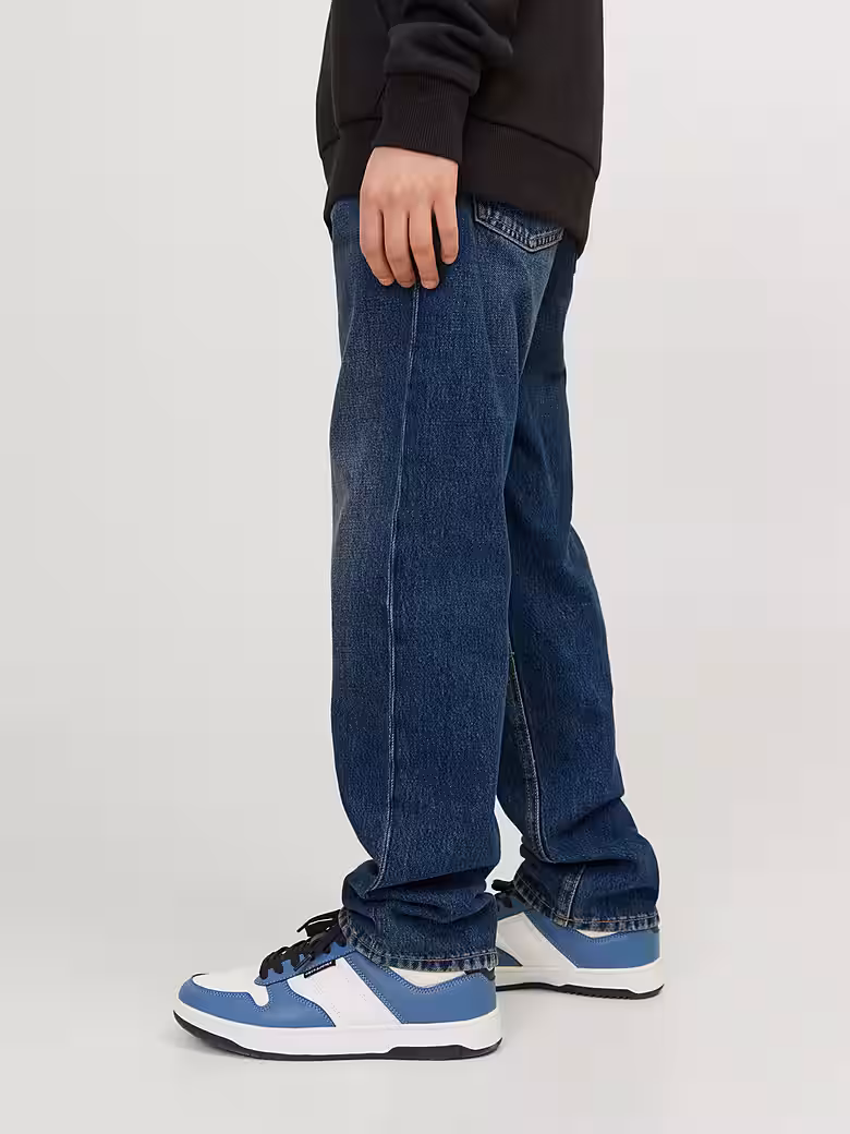 The loose-fit jeans »JJICHRIS robust, easy to care for, stylish« from Jack & Jones Junior has . Thanks to the loose cut, the wide leg shape of the boys’ jeans gives the kids enough freedom and the high waist height brings a modern touch to the children’s outfit. Small things that absolutely have to go home can fit in the pockets, back pockets and coin pocket.