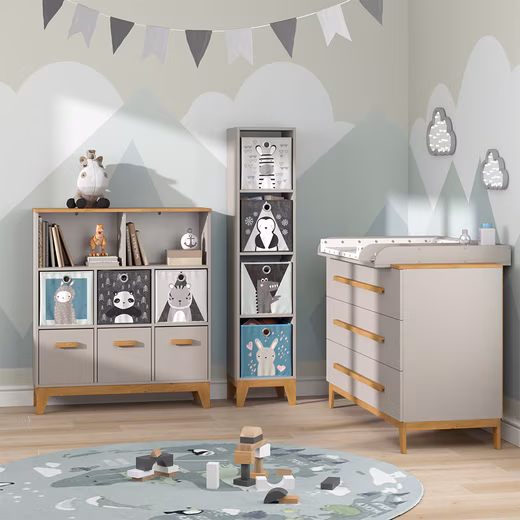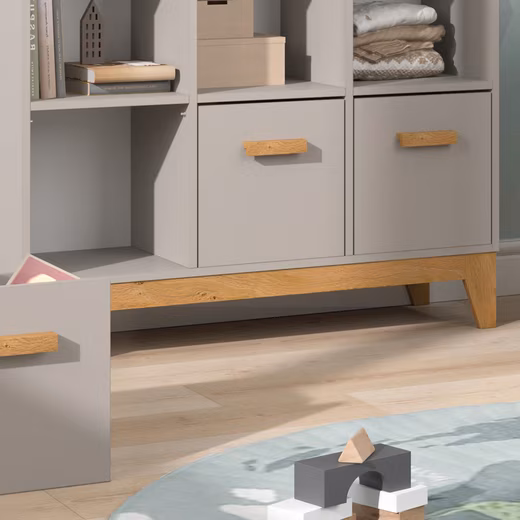 - With 5 open compartments and three drawers, the shelf for the children’s room offers plenty of storage space for books and toys.