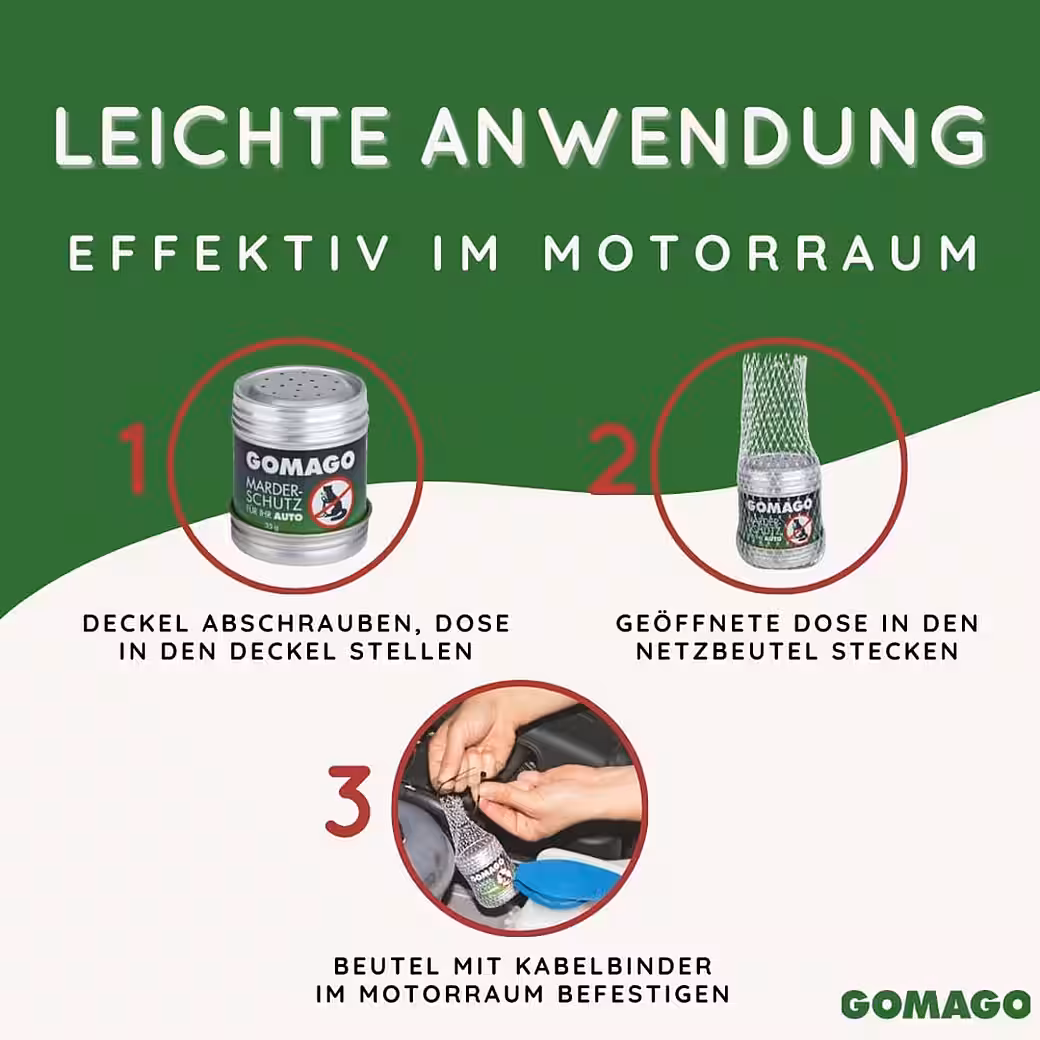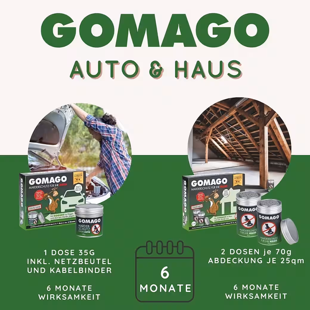 - EFFECTIVE – To defend their territory, martens mark it with a scent that signals danger to other members of their species. With GOMAGO, you declare your garage your “territory”.