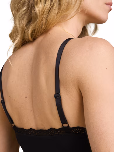 • Top: Seamless workmanship. Lace at the neckline. Slim, adjustable straps.