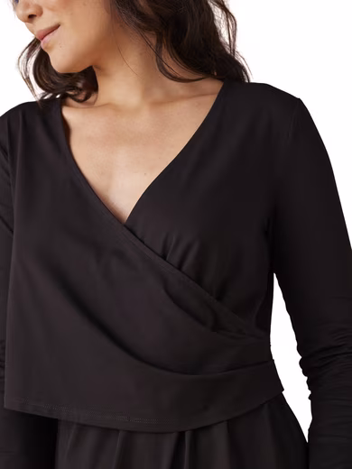 - Mini dress: Long sleeves. Wrap shape with criss-cross neckline.