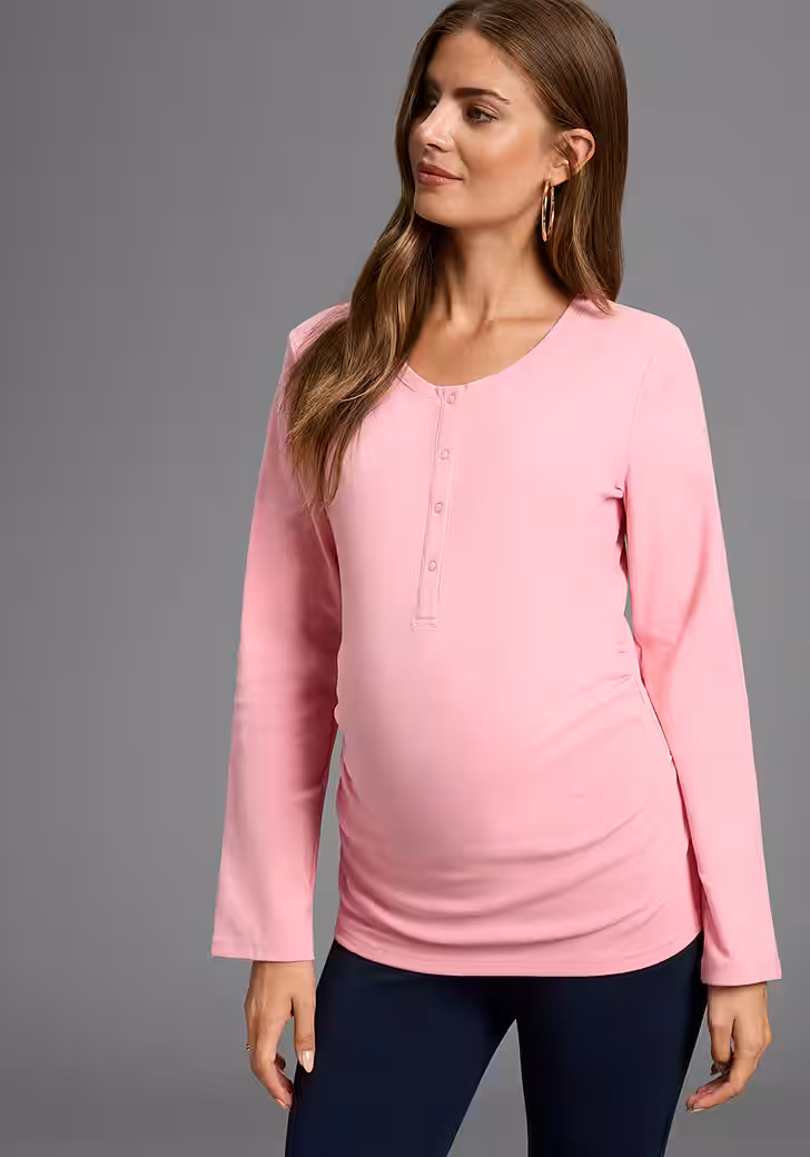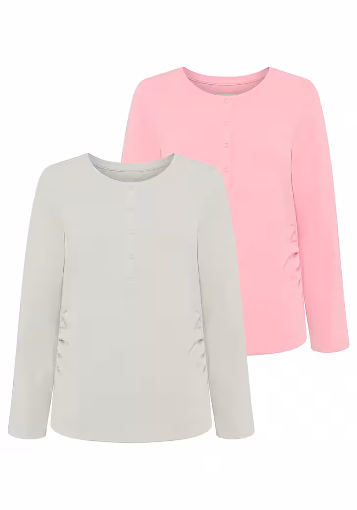 • 2-pack of nursing shirts, maternity shirt with long sleeves and side ruching for a comfortable fit during pregnancy