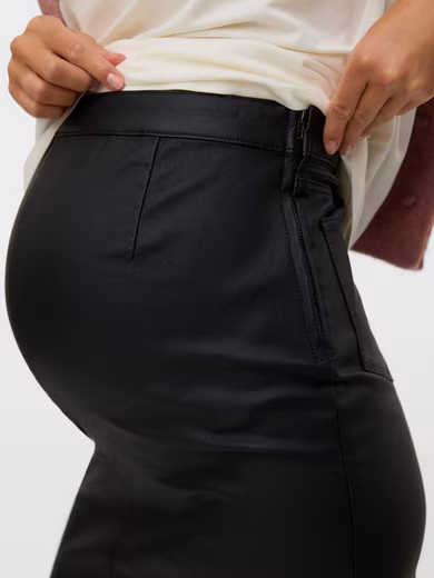 Ein Rock, der du auch in der Schwangerschaft tragen kannst: der Umstandsrock »MLSANTOS ABK COATED SKIRT HW NOOS« von Mamalicious!