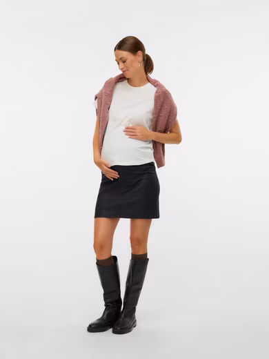The short maternity skirt »MLSANTOS ABK COATED SKIRT HW NOOS« by Mamalicious will be by your side during pregnancy.