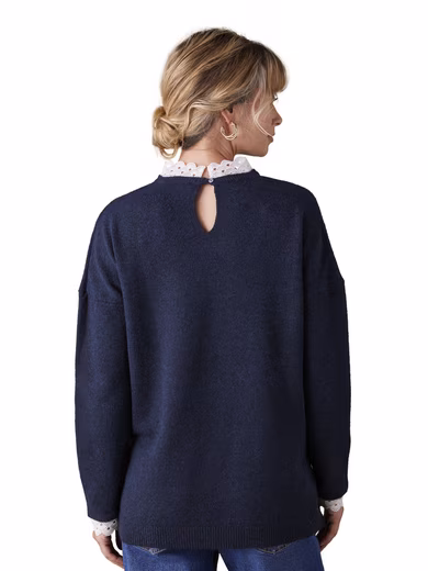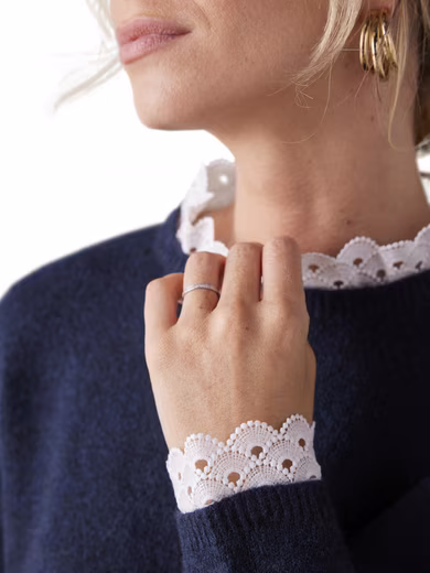 Detachable lace at the sleeve hem and neckline, fastening with buttons