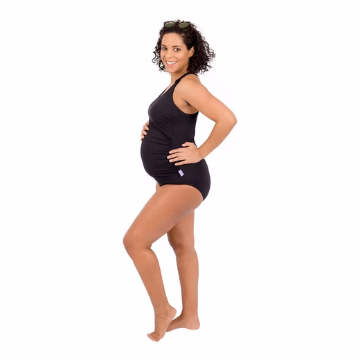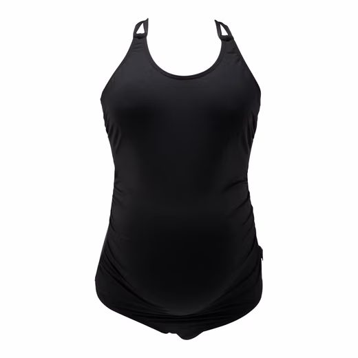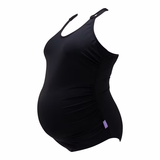 A maternity swimsuit that is not only sporty but at the same time very sophisticated with a delightful back view, noble matt and very elegant in black, suitable for B, C, D to E-cups without underwire. The upper part of the maternity swimwear is equipped with pre-shaped, removable padding which has its place inside in a cleverly integrated bustier. An elastic reinforcement below the bust gives shape and good support for optimal wearing comfort. Petit amour combines comfort and function with modern design. The wide, soft straps crossed on the upper back offer high wearing comfort and are still adjustable in length. The deep back neckline and skilful ruffles flatter every curve. The ergonomic fit allows every movement while swimming and gives a wonderful wearing comfort far beyond pregnancy. Size finder Order size Maternity swimwear ANYA_blau-white B C D – Cup: Our sizes Maternity swimwear: S-XXL are based on the following clothing and cup sizes. Please note that we have already taken into account the changes in the figure during pregnancy in our size calculation and that you should not order a size larger. Clothing size: 36/38 with cup size B C D Cup = S Clothing size: 38/40 with cup size B C D Cup = M Clothing size: 40/42 with cup size B C D Cup = L Clothing size: 42/44 with cup size B C D Cup = XL Clothing size: 44/46 with cup size B C D Cup = XXL