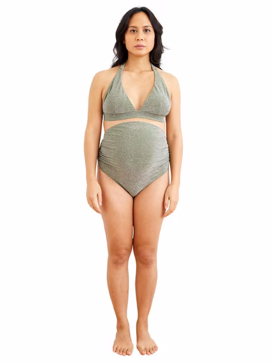 Seductive and chic: The shimmering bikini lets expectant mothers shine on the beach or bathing lake