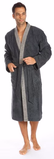 Cuddly soft quality and a visually appealing design – these are the attributes that make the “Bruno” men’s bathrobe from Egeria stand out. This bathrobe impresses with its chic, long style, which is particularly accentuated by the striped border. The visual highlight is the kimono collar. The patch pockets and the included belt increase the comfort of this timelessly modern men’s bathrobe. And thanks to the pleasant cotton quality, this dressing gown is cuddly soft and particularly easy to care for: It can be machine washed at up to 60°C and then tumble dried. Thus, the “Bruno” men’s bathrobe from Egeria fulfills everything you could wish for in a bathrobe.