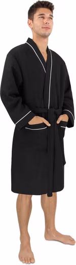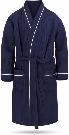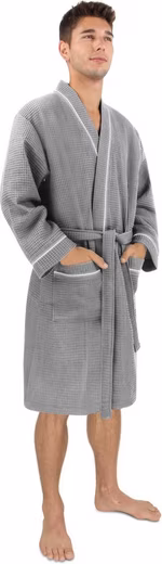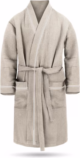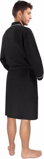 The lightweight ‘Bali’ cotton dressing gown offers maximum comfort on warm days. The loose cut promises a casual look, whether in the morning after getting up or at the spa on a summer day. The belt allows you to adjust the dressing gown perfectly to your measurements. The dressing gown also has two patch pockets for safely storing change, a cell phone, or keys. Thanks to its light weight and compact size, the dressing gown is a perfect companion for the spa or on vacation.