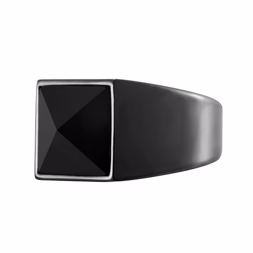 Men’s stainless steel ring black coated with black stone