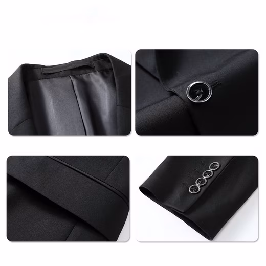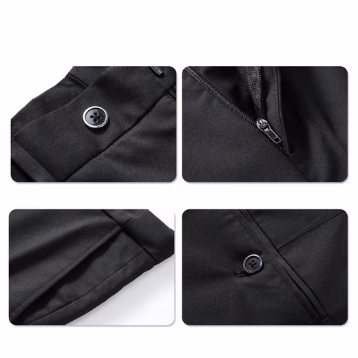 Allthemen has always focused on creating fashionable, comfortable, and elegant men’s clothing. This emphasizes a man’s personality and his positive and optimistic outlook on life. This three-piece suit is made from high-quality blended materials. It features a tailored stretch fabric for comfort and freedom. The one-button suit jacket features a center back vent for greater freedom of movement. The jacket’s chest pocket is decorative, and the two side pockets are stitched, allowing you to remove the seams yourself if necessary. The vest’s four-button placket features a classic and fashionable design. The vest has two real pockets and one fake chest pocket. The trousers have four pockets and multiple belt loops, allowing you to attach a belt to freely adjust your waist. Pairing this suit with a white shirt alone creates a mature and elegant look. Whether for business, meetings, weddings, parties, or speeches, this suit can provide you with a comfortable wearing experience.