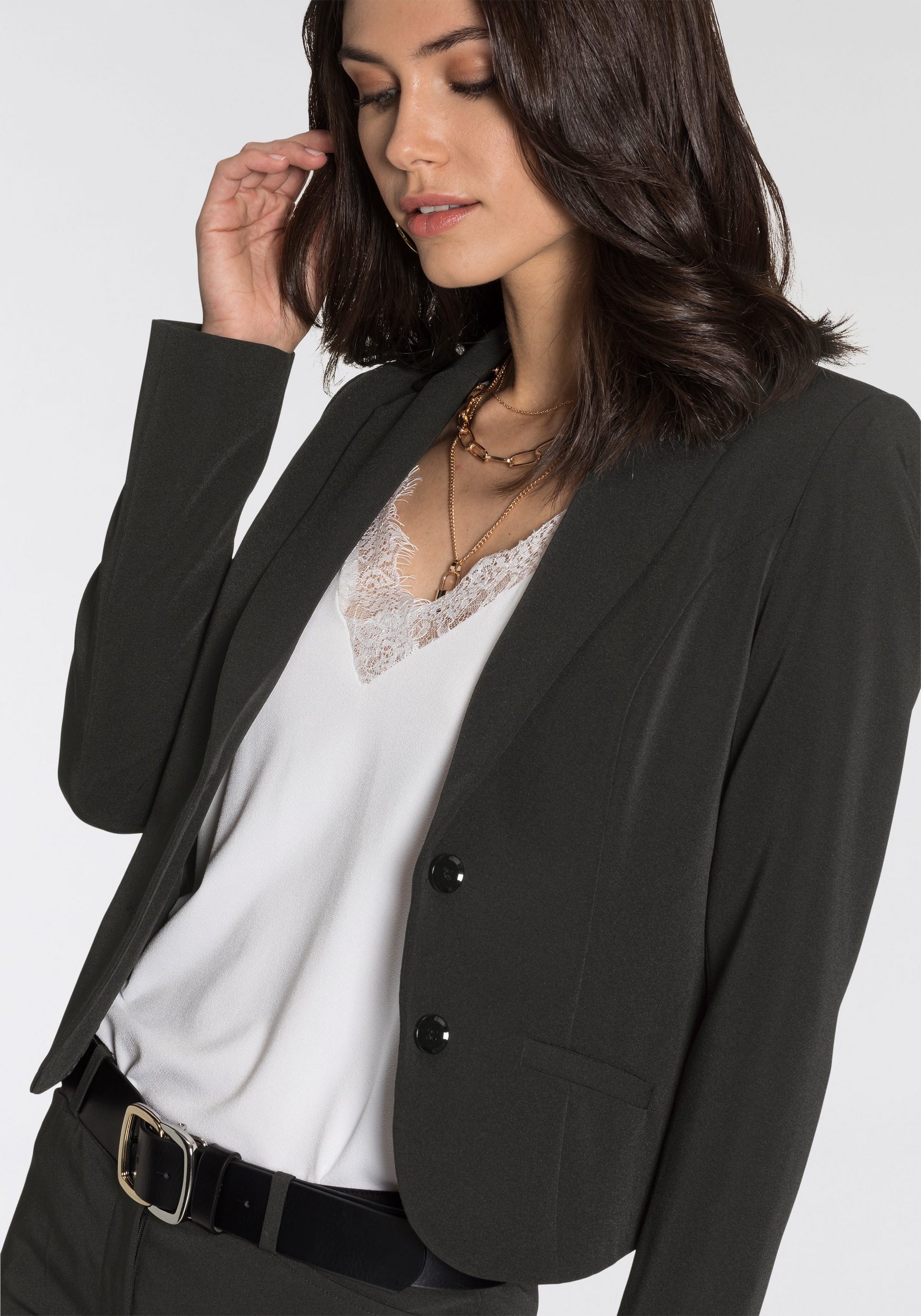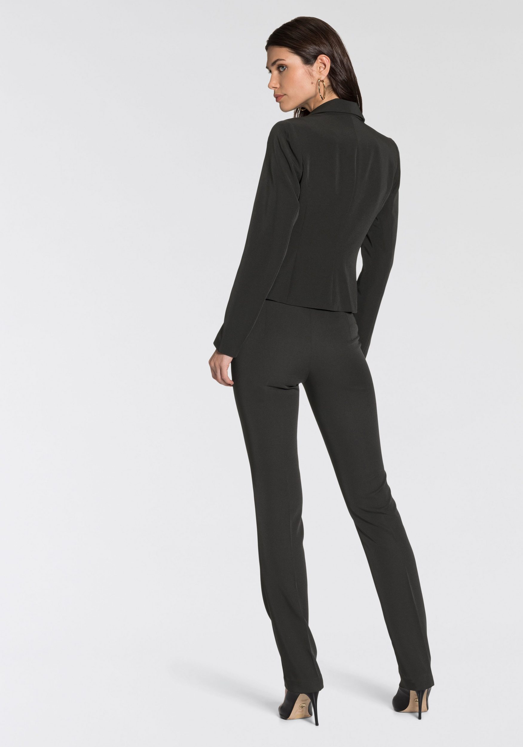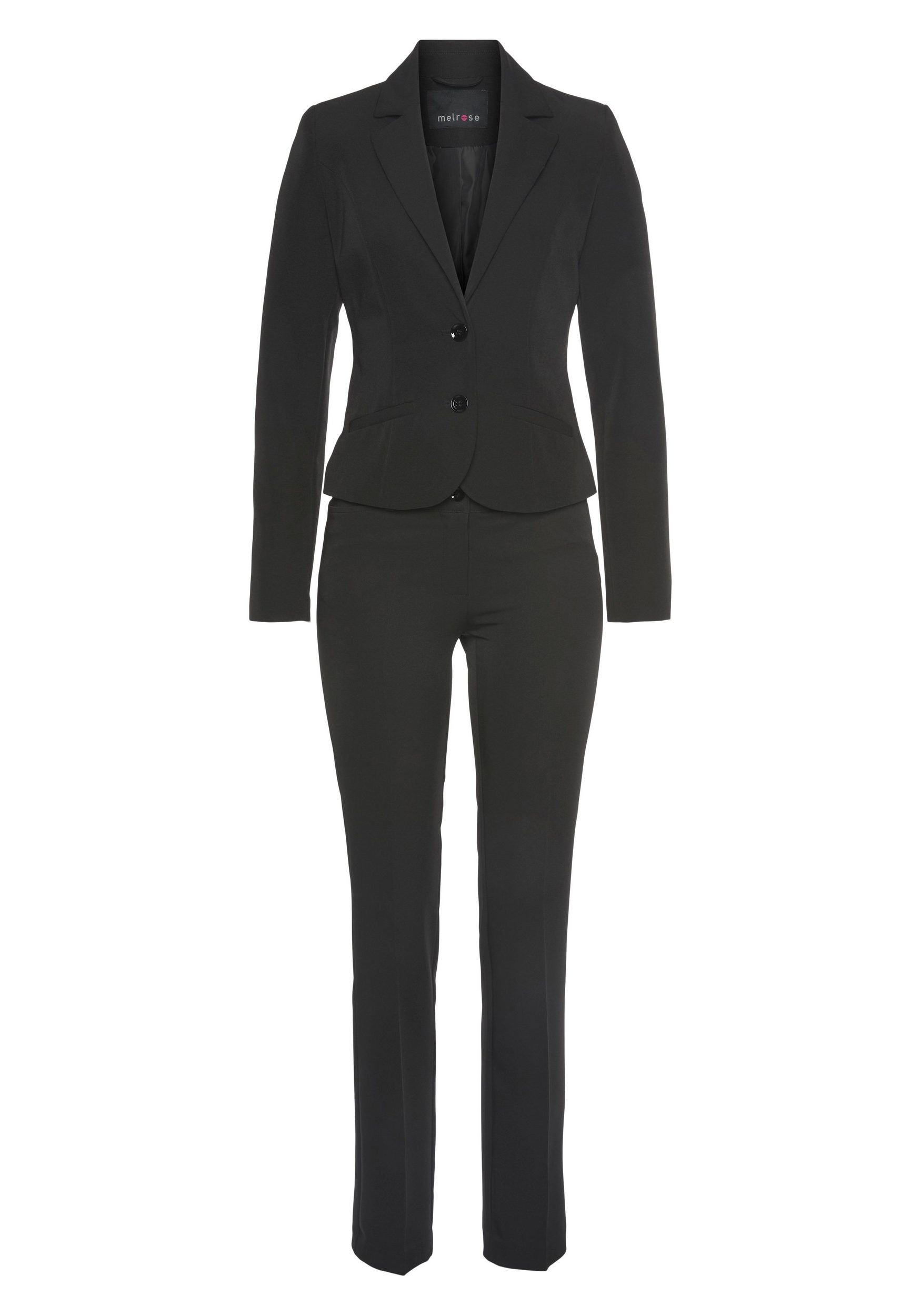 Chic, modern, and feminine! This elegant pantsuit from Melrose combines a figure-hugging blazer with slim-fitting trousers that immediately catch the eye with their very low rise and flared legs. The lightweight, stretchy fabric ensures the perfect blend of style and comfort. A look that accentuates your figure and makes you shine on any occasion. With this pantsuit from Melrose, you’ll always be stylish on the go – for an appearance that makes an impression!