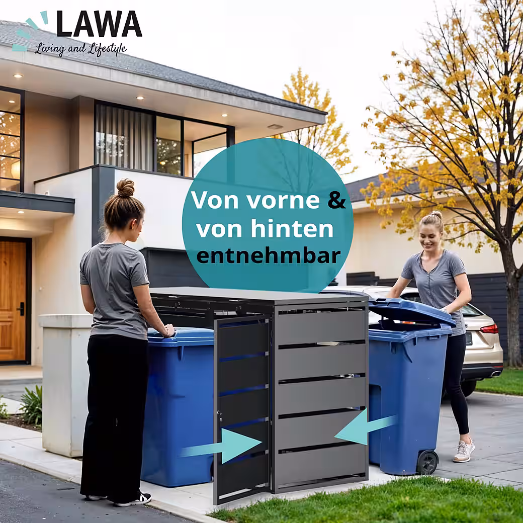 - The bins can be flexibly removed from both sides – ideal for tight or narrow parking spaces.
