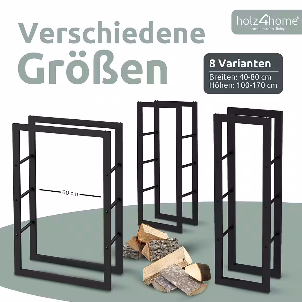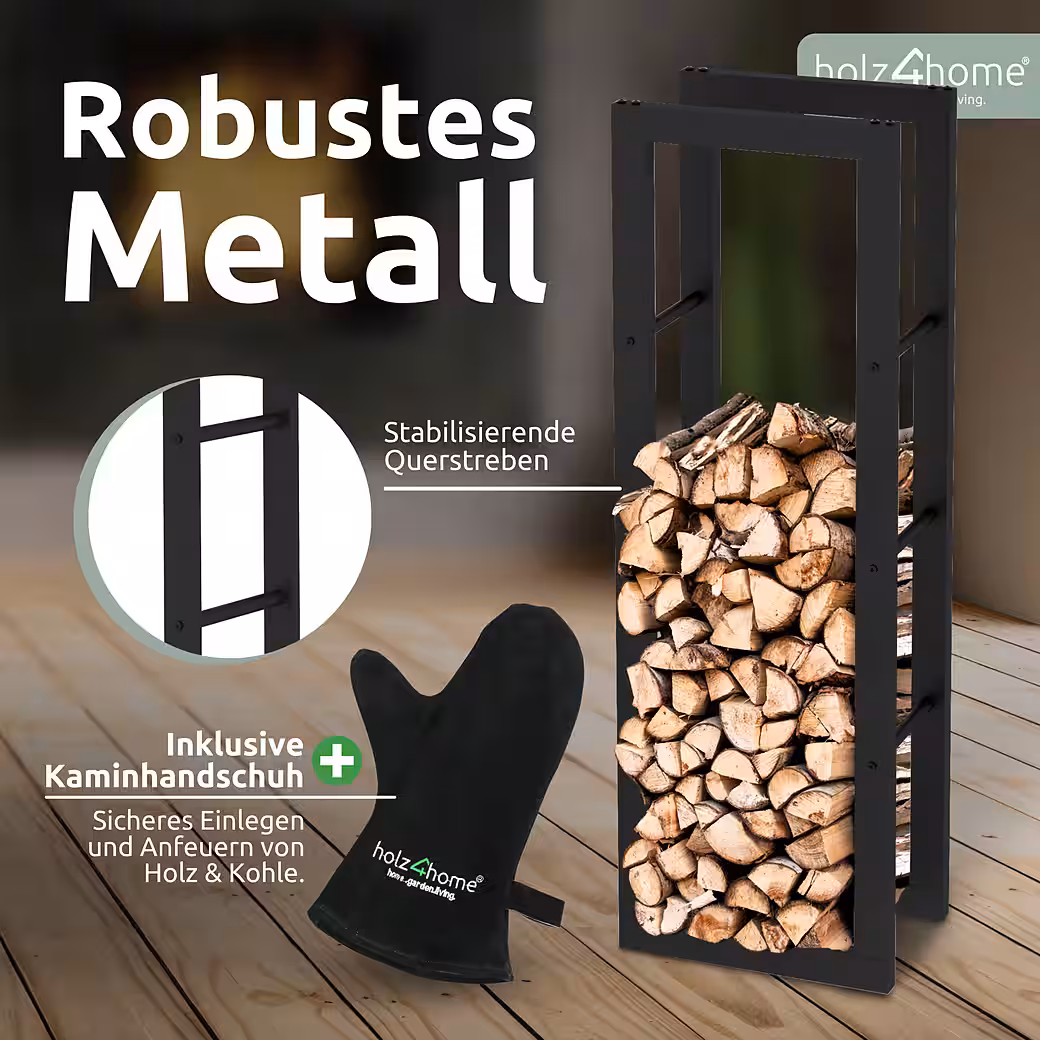 VARIETY OF SIZES: Choose from eight different sizes to find the perfect log rack for your needs and space. ROBUST CONSTRUCTION: Made of high-quality metal with a sleek black finish, this rack offers both stability and style. INCLUDES STOVE GLOVE: Each rack comes with a handy fireplace glove for safer and more comfortable handling of wood and fireplace accessories. ORGANIZATION & ELEGANCE: Keep your firewood neatly and stylishly organized while adding a rustic touch to your room. EASY ASSEMBLY: With the included assembly instructions and hardware, this log rack is easy to assemble, so you can start using it quickly.