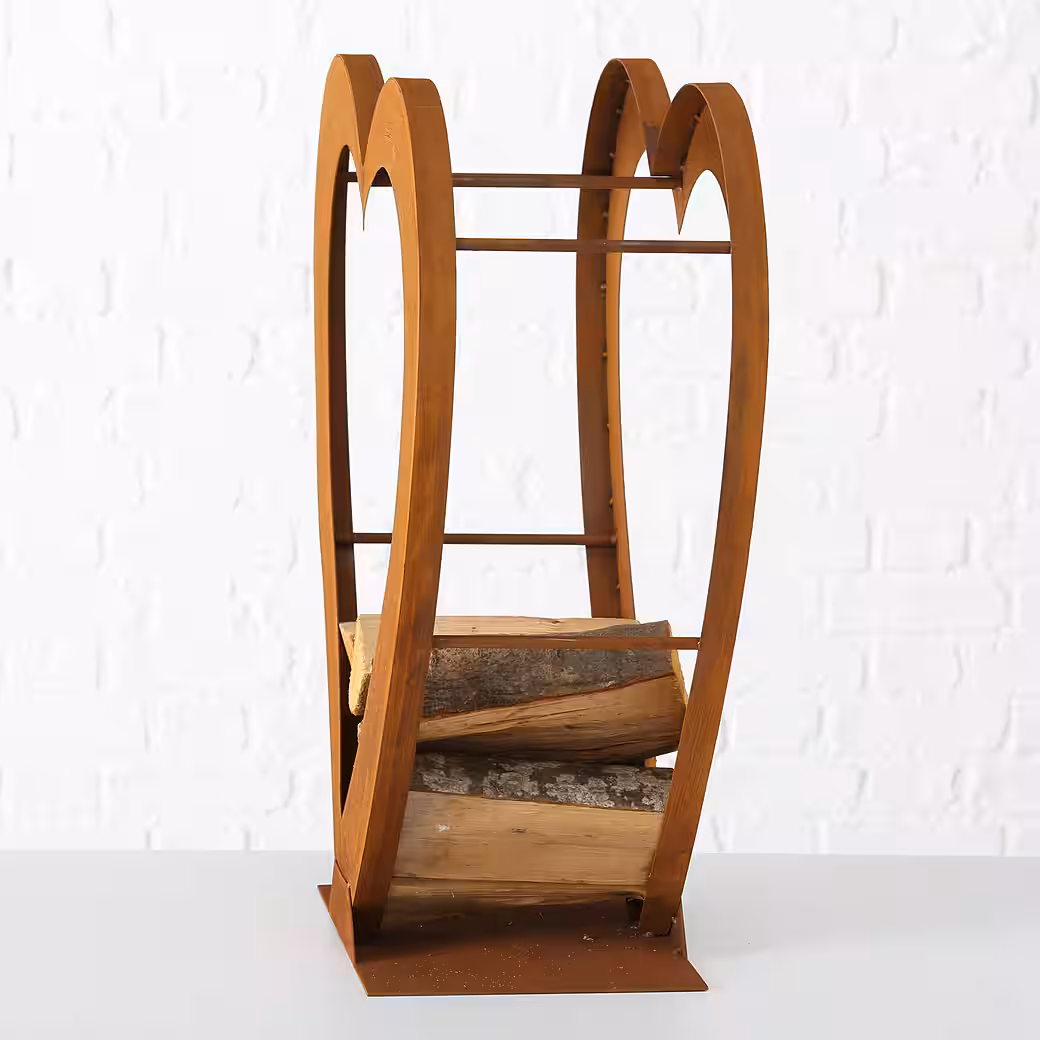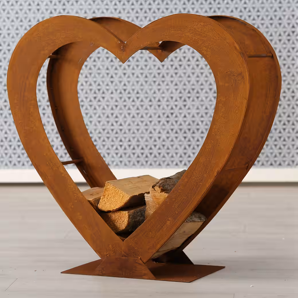 - Heart-shaped design: The decorative, heart-shaped design gives this firewood rack a unique charm and makes it a stylish addition to your home.