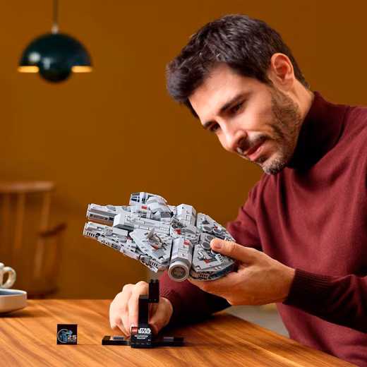The included stand allows you to display the Millennium Falcon at a dynamic angle. Recreate the starship from Star Wars: A New Hope in detail. The Millennium Falcon is a model to collect, build, and display. This Star Wars™ starfighter made of LEGO® bricks is 24 cm long. Download the LEGO® Builder app with interactive 3D building instructions. Part of the LEGO® Star Wars™ Starship Collection.