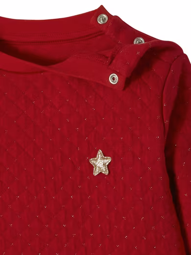 Glittering star appliqué at the chest