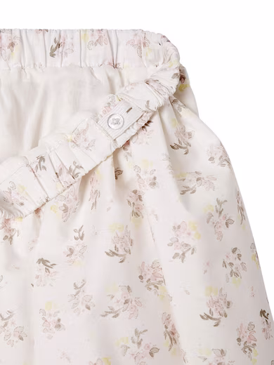 . Flat waistband, adjustable width with elastic and buttons. Concealed
