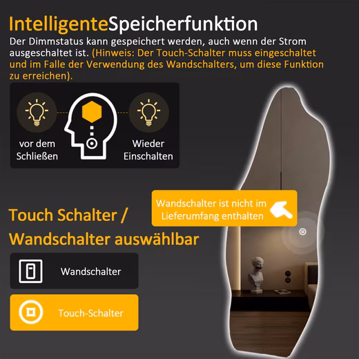 • WDWRITTI products technology-driven: WDWRITTI LED Mirror with Intelligent Memory Function – Think of your personal Helligkeitseinstellung.Er will show you the exact same brightness the next time you turn it on in this light mode.