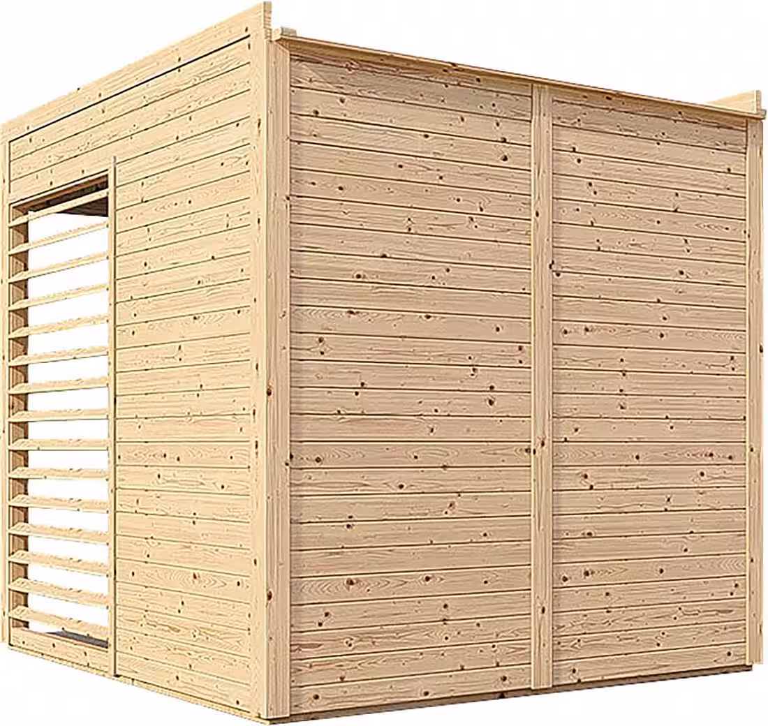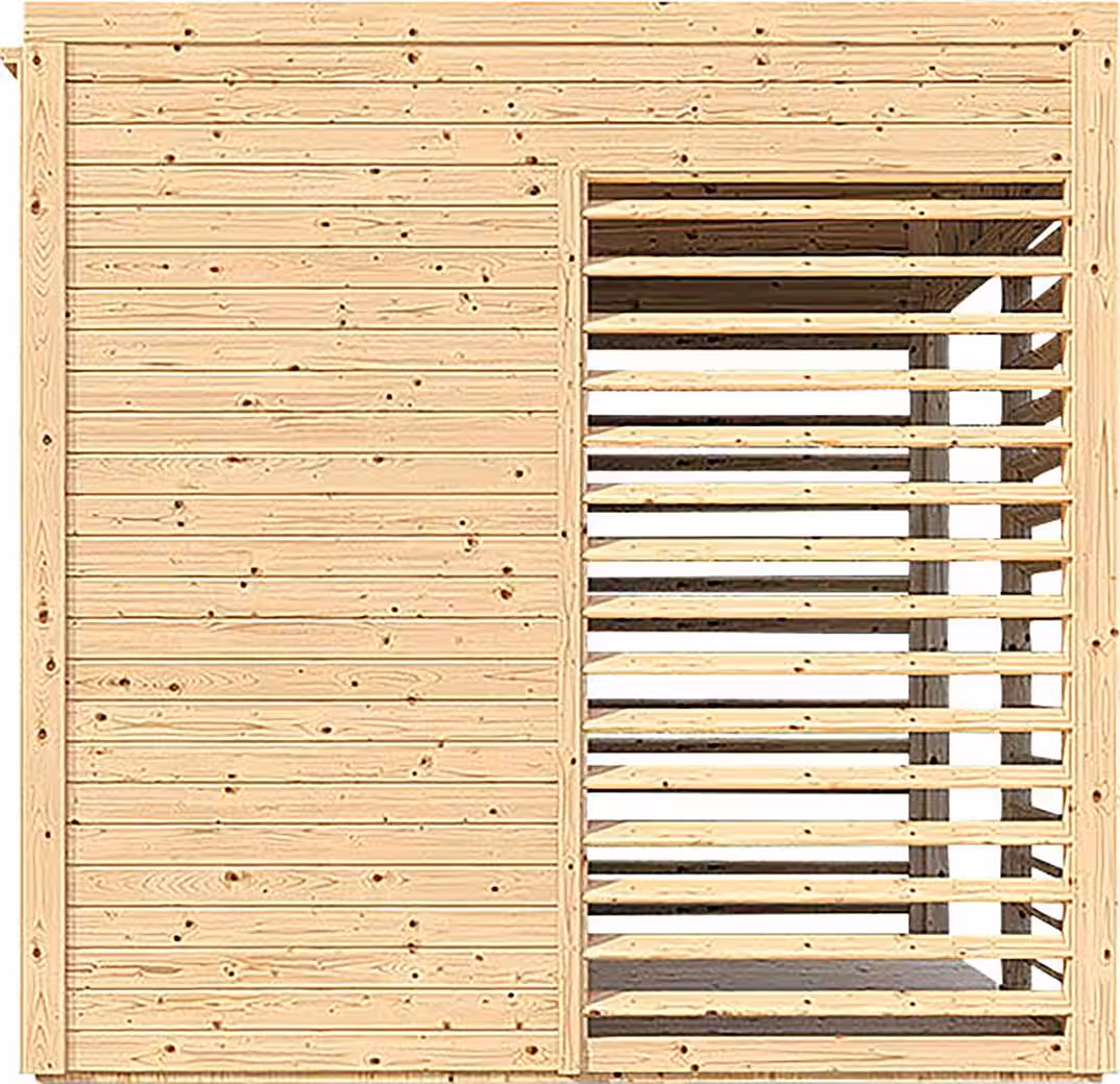 - Easy assembly thanks to prefabricated elements, including roof and floor