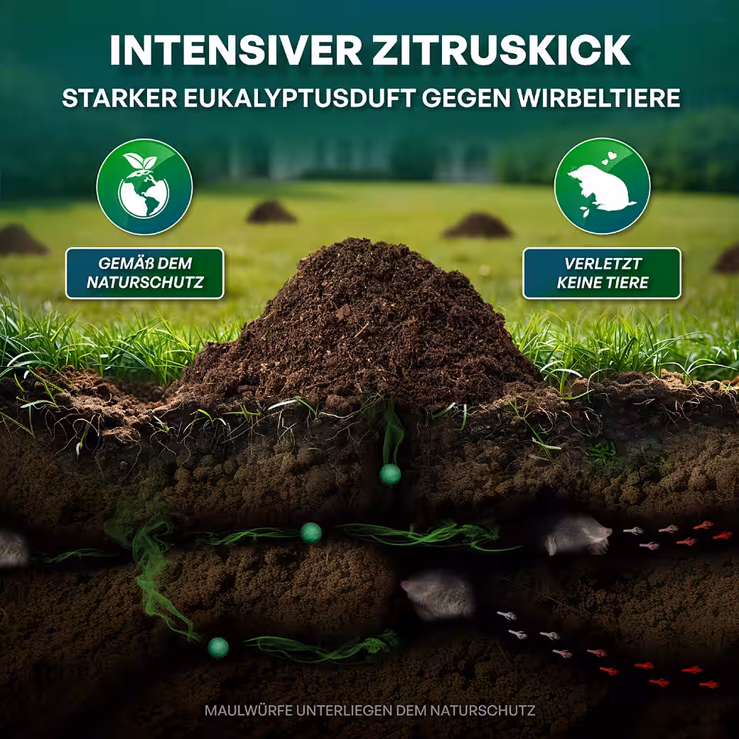 • NATURAL FORMULA FOR YOUR GARDEN: Trust in the power of Eucalyptus citriodora oil. Our eco-friendly mole pellets are biodegradable.