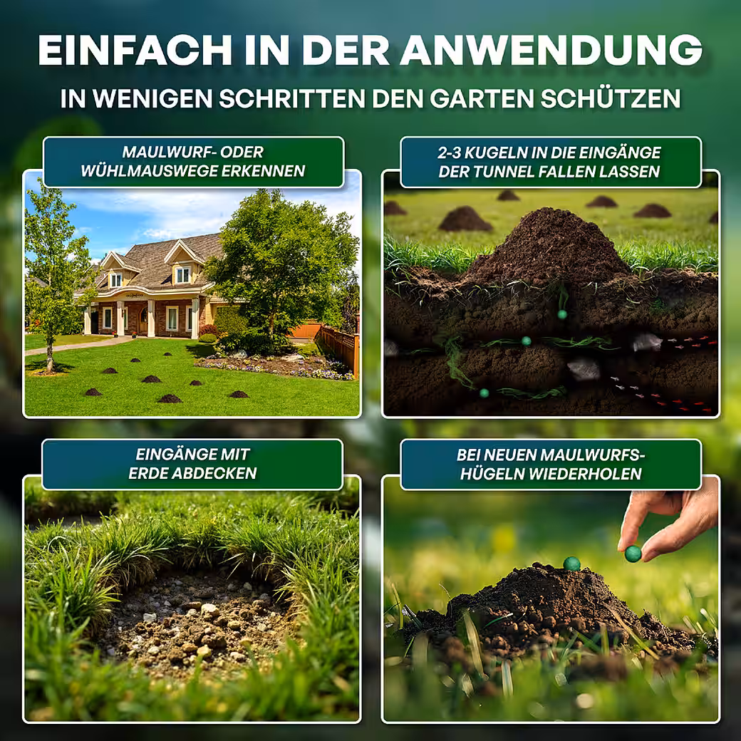 • MOLE REPELLENTS MADE IN GERMANY: Our PVU mole balls are manufactured in Germany under the highest quality standards.