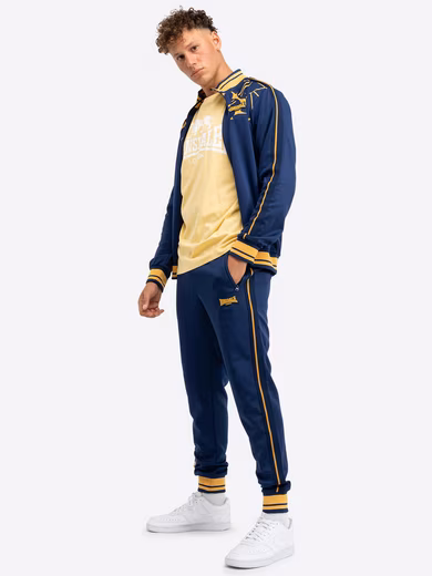 Experience the new Lonsdale tracksuit, featuring printed fabric panels in various locations for a unique look! The small logo details in the form of a 3D rubber badge on the chest and left thigh give the suit a special touch. The sewn-on drawstrings perfectly round off the design, and the practical zippered pockets provide plenty of storage space for your essentials. The suit also scores highly in terms of comfort thanks to the elastic ribbed cuffs that adapt perfectly to your body shape. Get this trendy tracksuit now and show off your individual style while training!