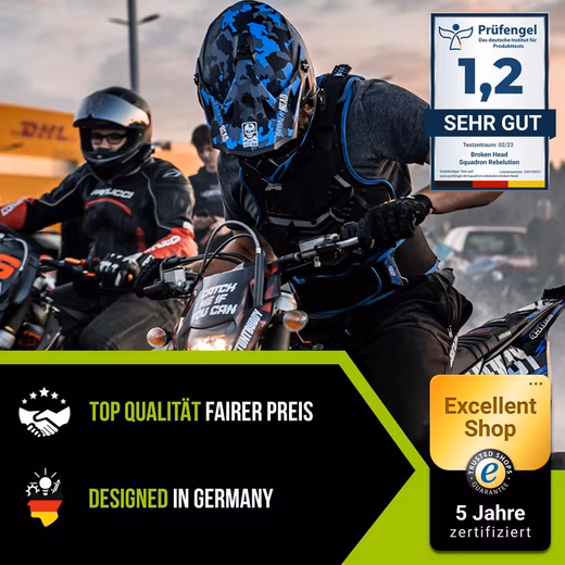 With the Squadron Rebelution in blue  , you’ll fly like a fighter jet across the off-road track. Loud and lightning fast, you’ll leave everything behind. The camouflage pattern makes you look like a jet on a mission. Your order: Rebellion and full throttle !