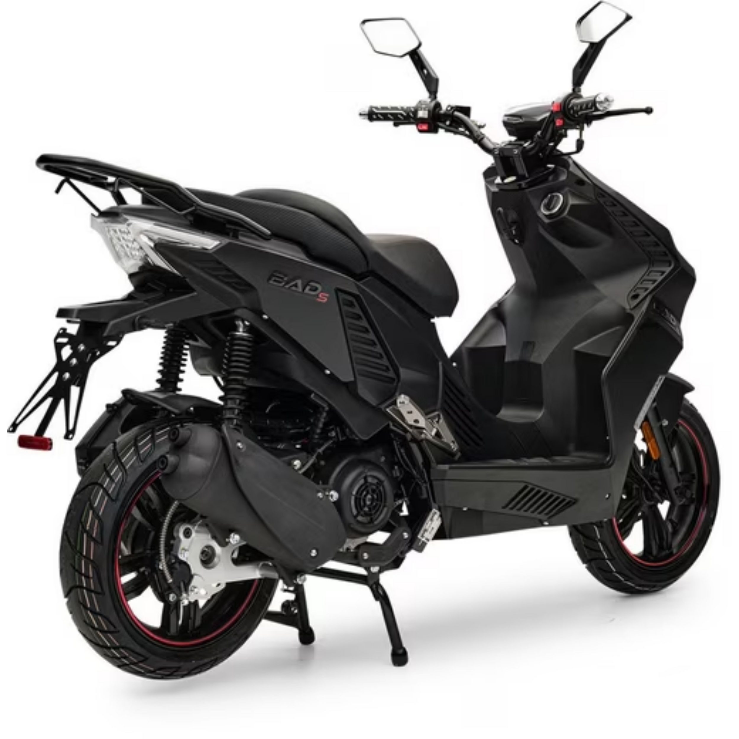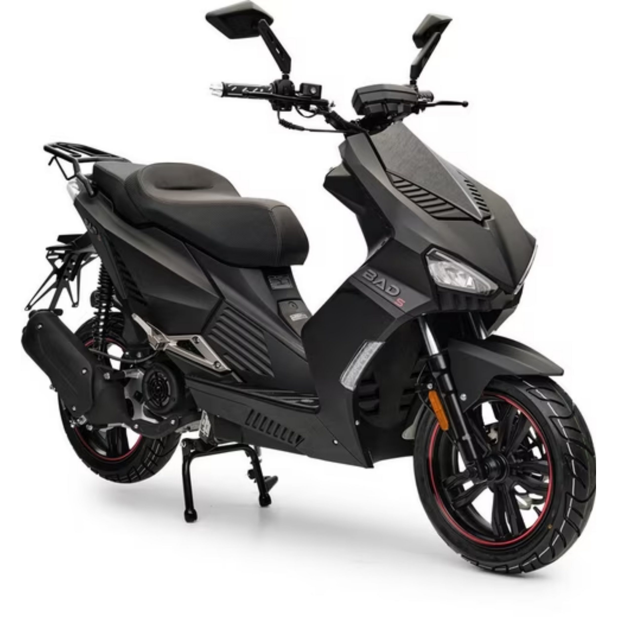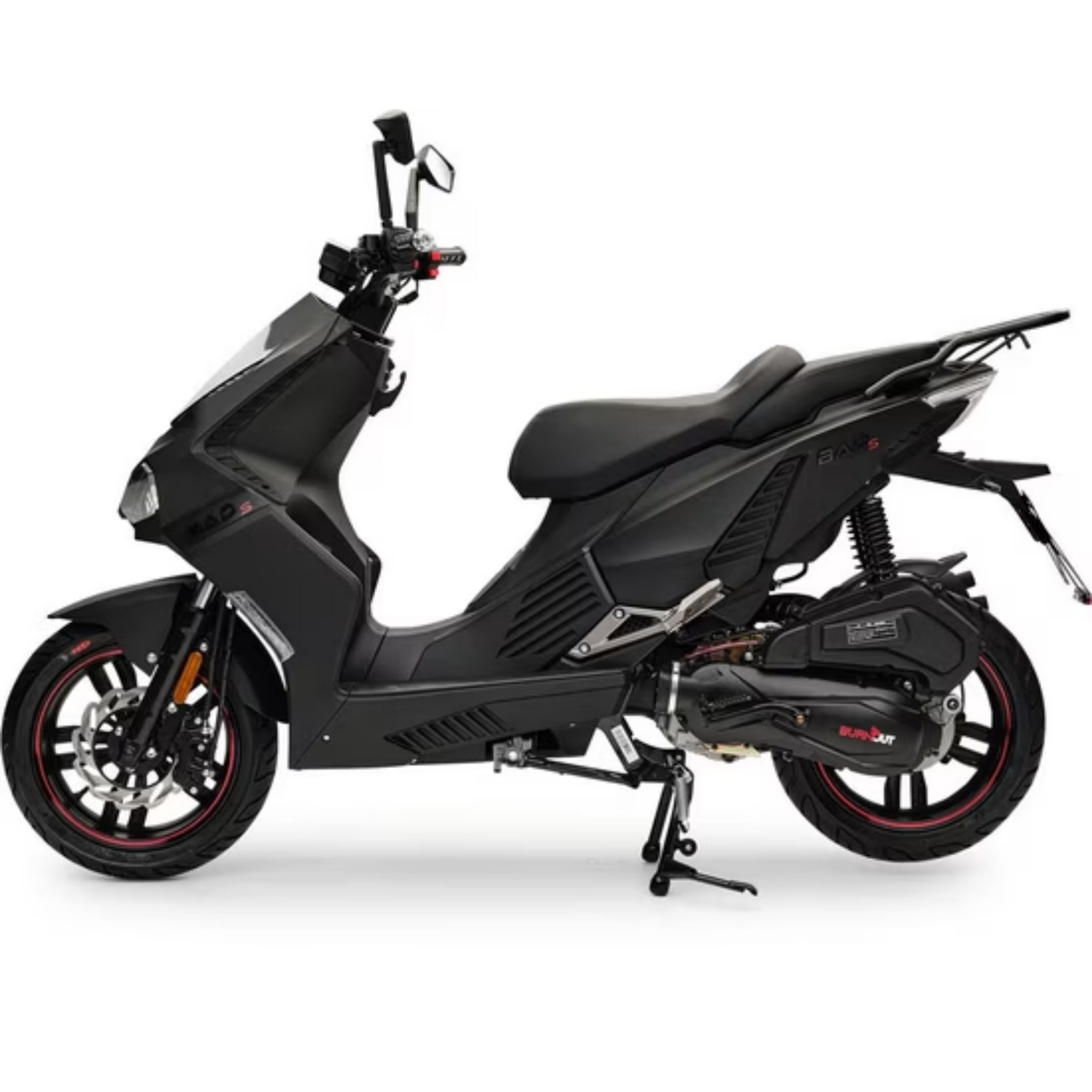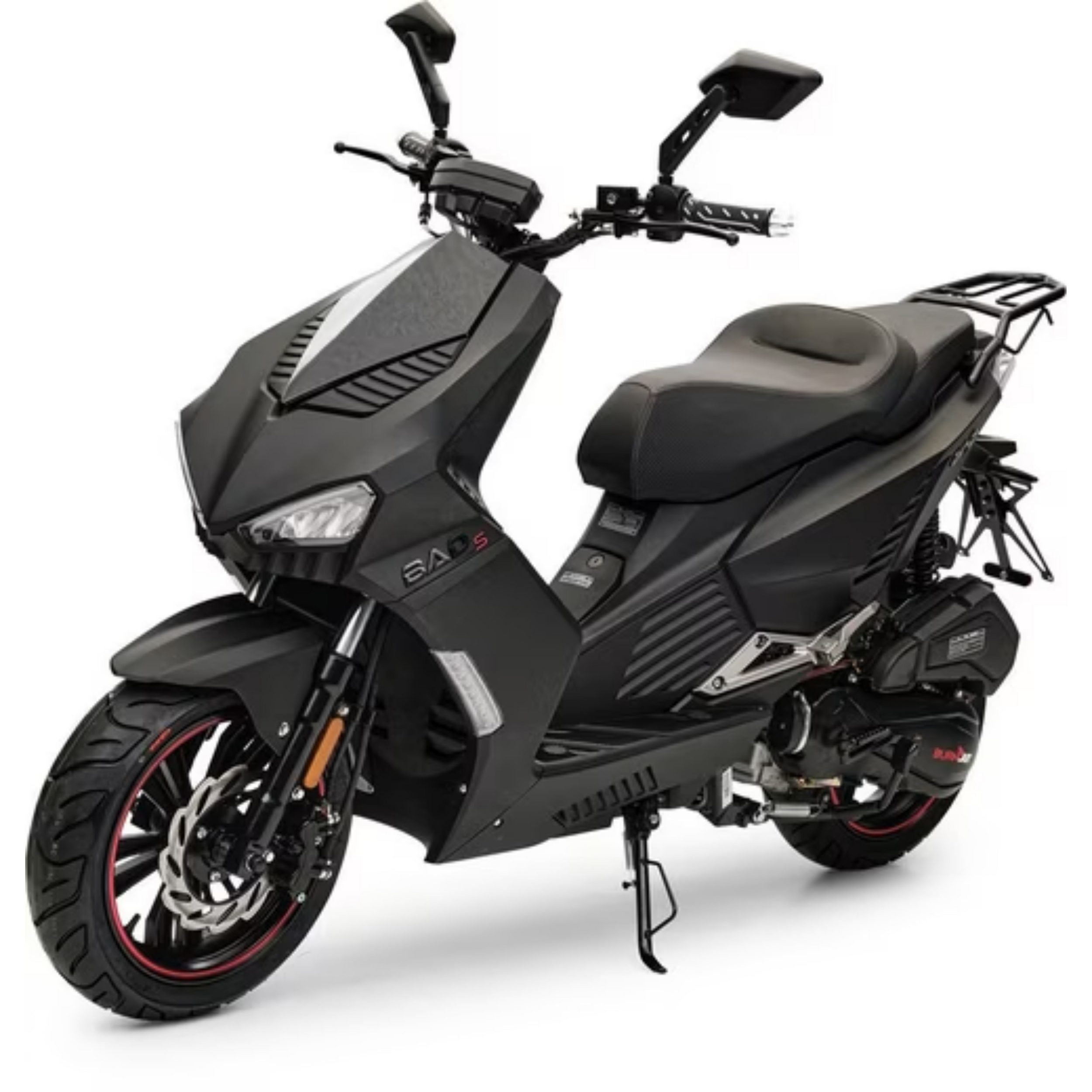 Regarding the engine, we at Burnout Trade always place great emphasis on a clean, reliable, and responsive design, so you can always count on your vehicle. The 50cc four-stroke engine with EFI fuel injection delivers 2.5 hp and accelerates you and your passenger to a top speed of 25 km/h. This is especially practical if you’ve recently obtained your driver’s license or are rarely allowed to drive faster than 30 km/h on your usual routes. Hydraulic disc brakes, fitted both front and rear, provide the necessary sense of security, while full LED headlights, also front and rear, ensure safe riding at dusk and at night. You also won’t have to worry much about refueling: fuel consumption is a reasonable 2.6 liters per 100 km.