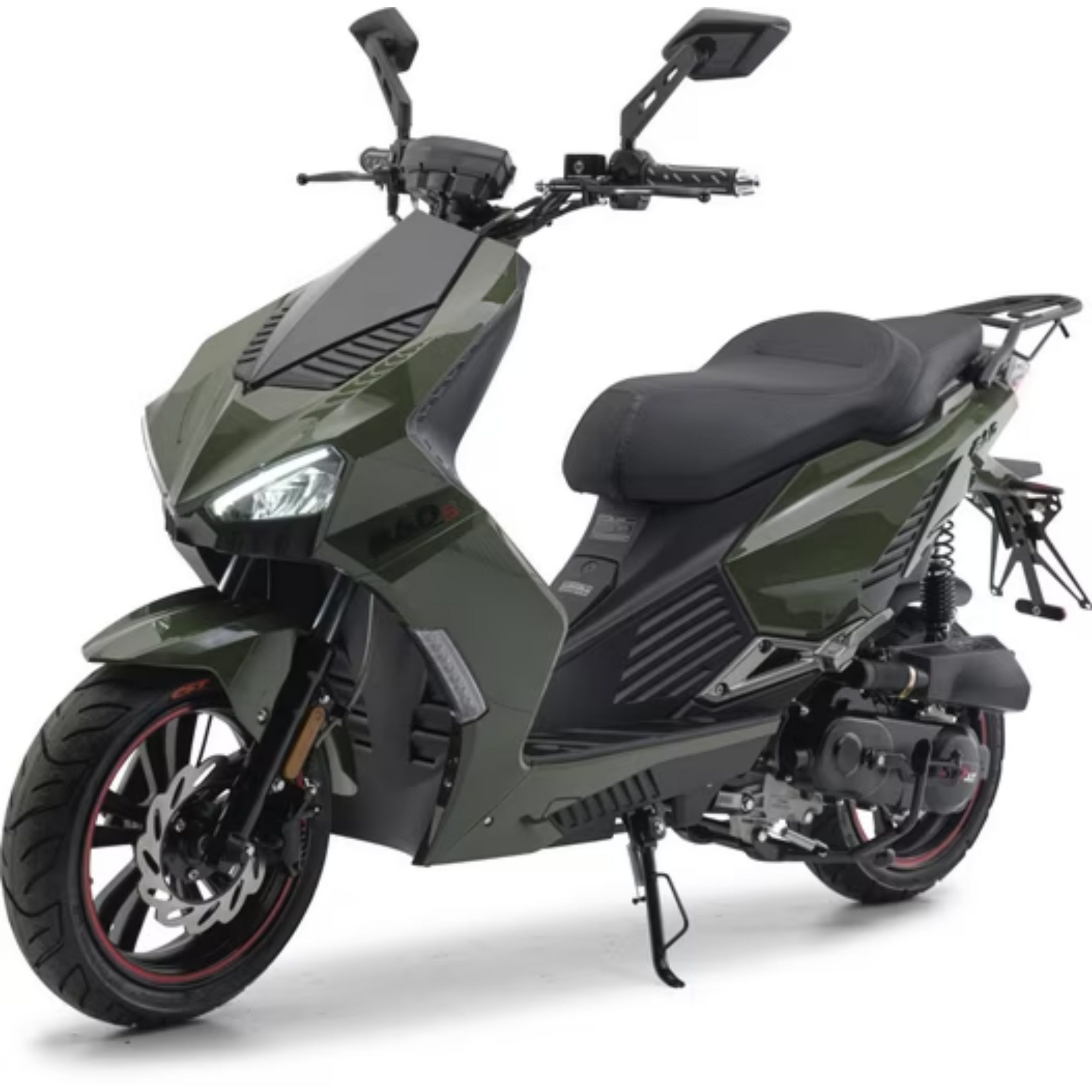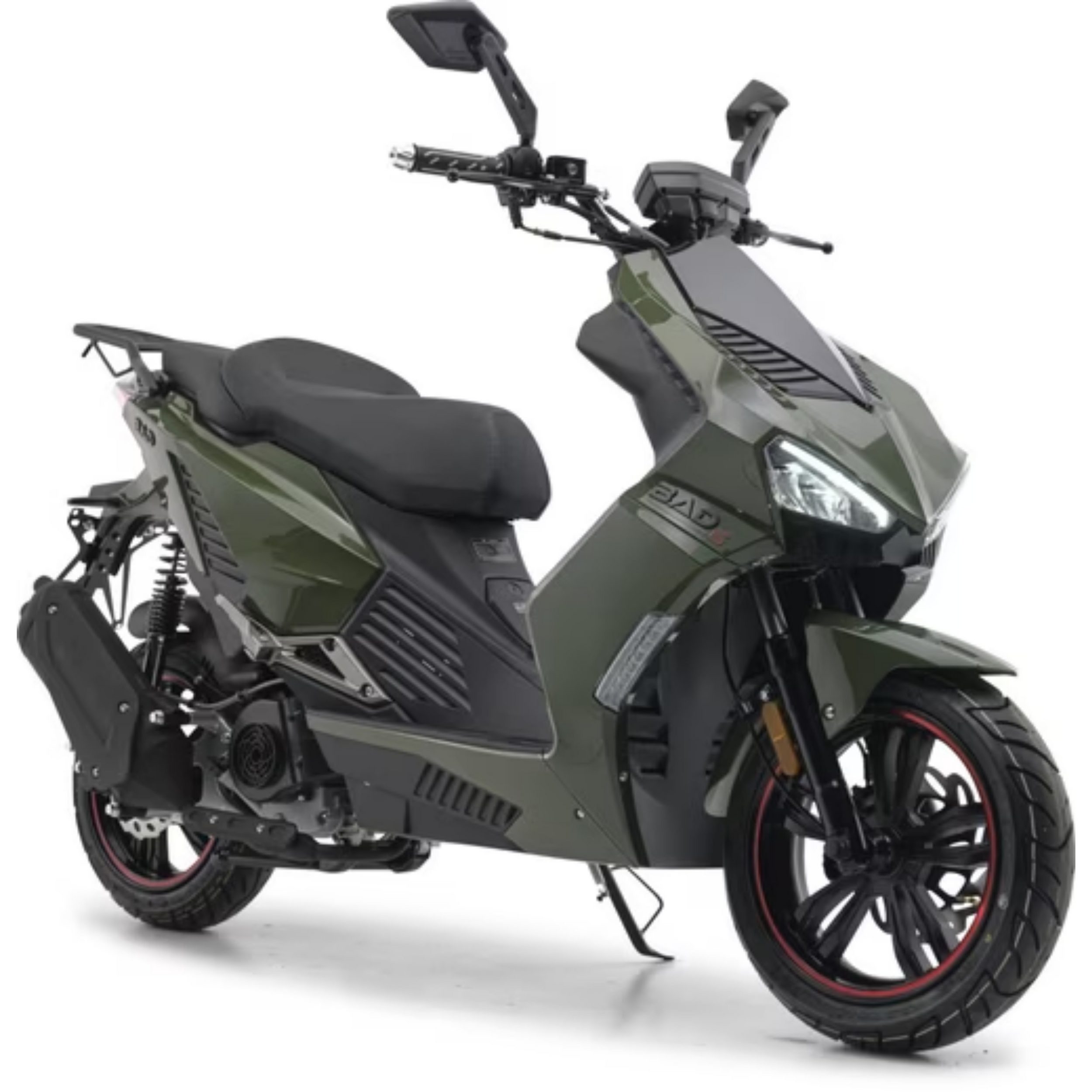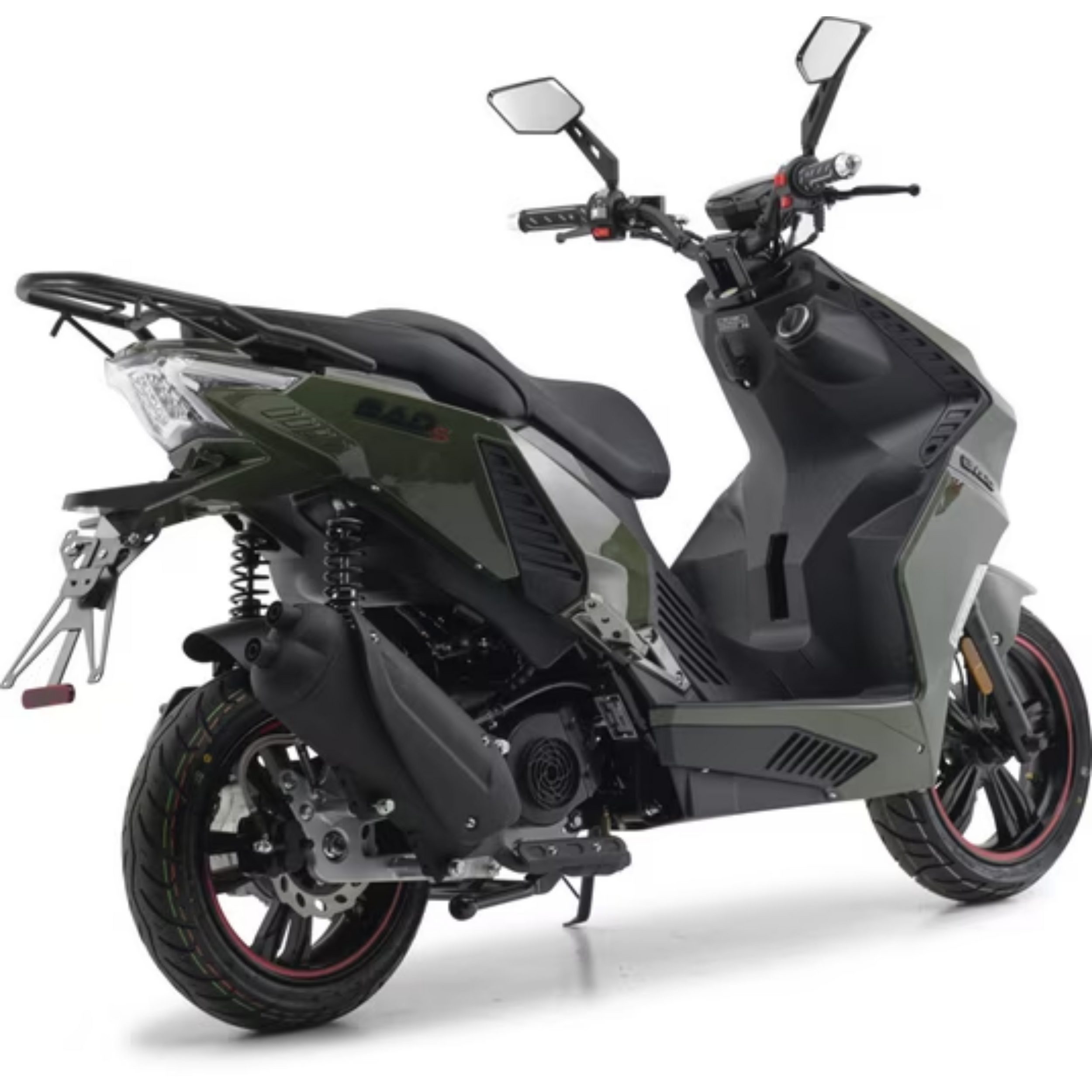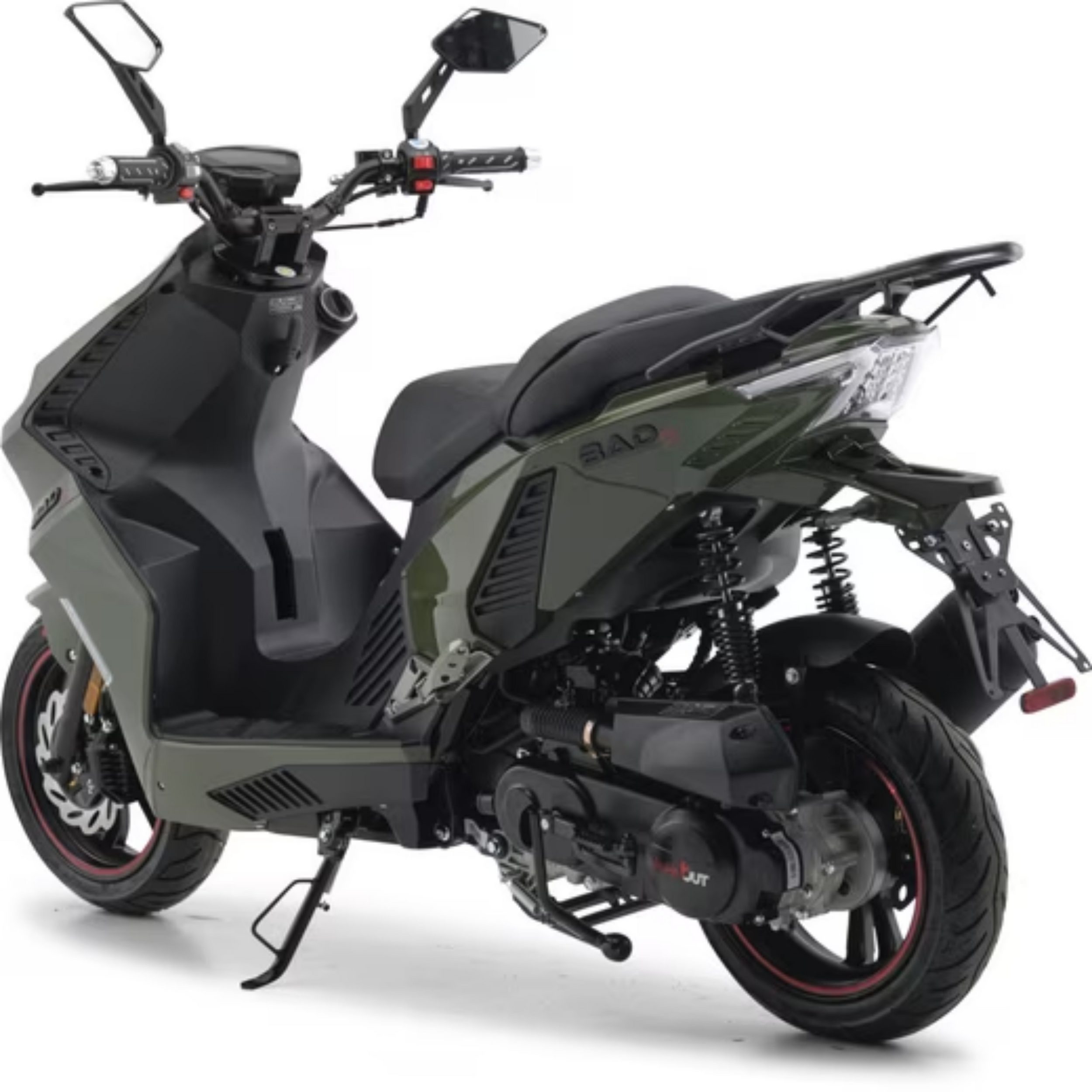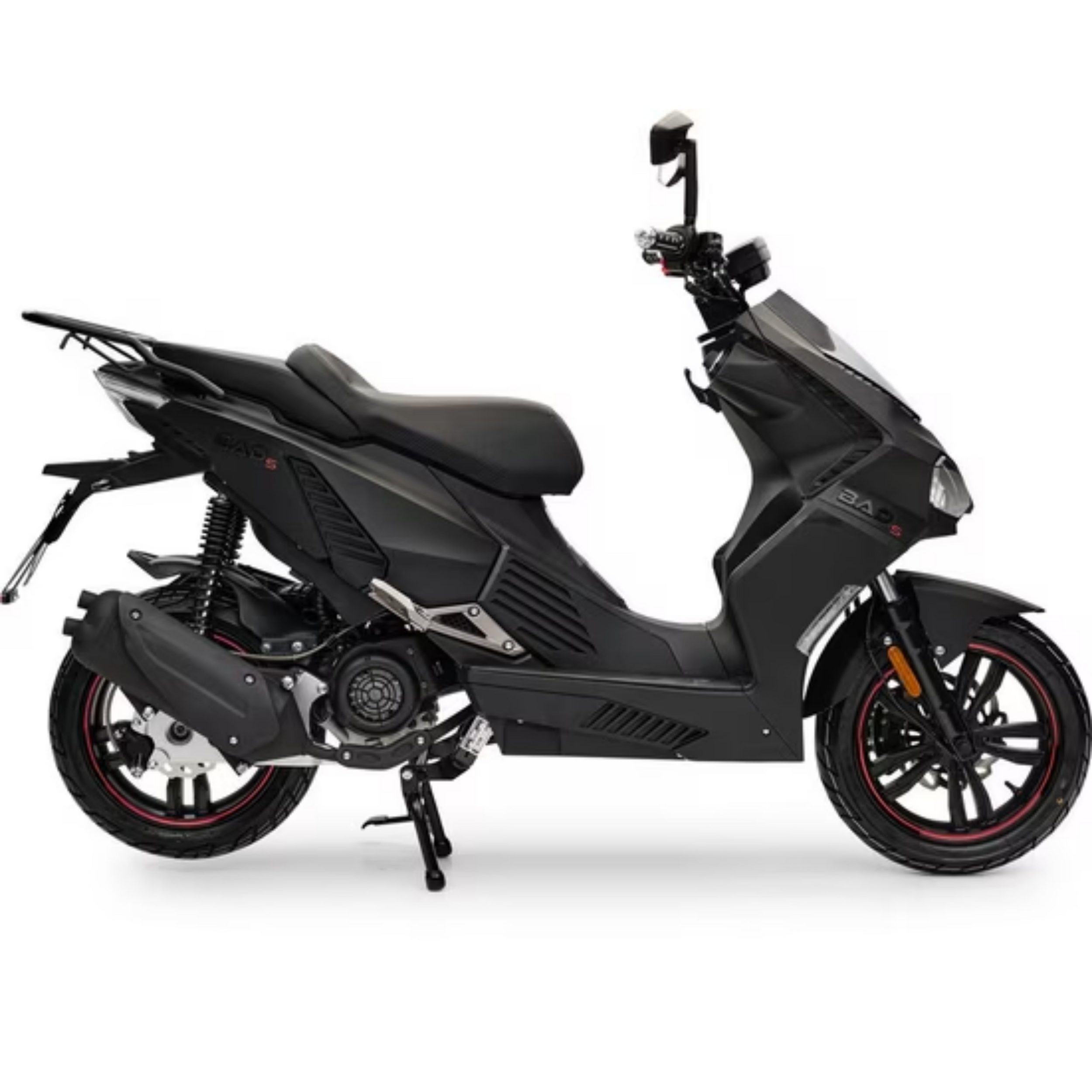 Regarding the engine, we at Burnout Trade always place great emphasis on a clean, reliable, and responsive design, so you can always count on your vehicle. The 50cc four-stroke engine with EFI fuel injection delivers 2.5 hp and accelerates you and your passenger to a top speed of 25 km/h. This is especially practical if you’ve recently obtained your driver’s license or are rarely allowed to drive faster than 30 km/h on your usual routes. Hydraulic disc brakes, fitted both front and rear, provide the necessary sense of security, while full LED headlights, also front and rear, ensure safe riding at dusk and at night. You also won’t have to worry much about refueling: fuel consumption is a reasonable 2.6 liters per 100 km.