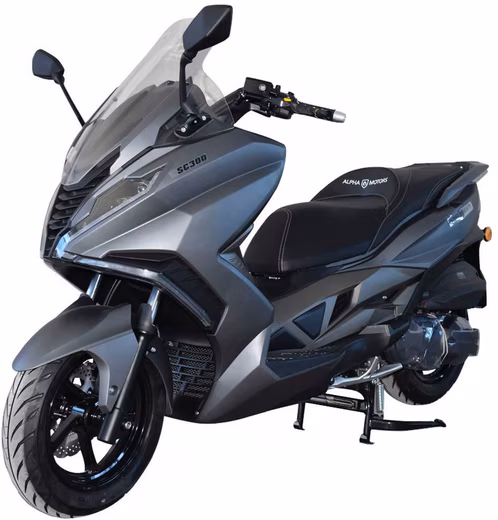 Alpha Motors Sport Cruiser 300 Scooter – Powerful, Stylish, and Economical. The Alpha Motors SC300 scooter embodies the perfect symbiosis of performance, style, and efficiency, setting new standards in the world of two-wheelers. Equipped with a powerful 276cc engine, this scooter offers a dynamic riding experience that makes every ride an unforgettable adventure. Powerful 276cc Engine: The heartbeat of the SC300 is its impressive 276cc engine, boasting 17.5 kW (23.79 hp) and liquid cooling. This immense power enables accelerated riding and effortless maneuvering in traffic. Whether you’re navigating rush hour traffic on short trips or cruising on open roads, the SC300 always provides the power you need. Top Speed ​​and Control: A top speed of 125 km/h catapults the SC300 into the league of high-speed scooters. But the riding pleasure isn’t sacrificed for control. Sophisticated technology and design ensure you maintain full control of your vehicle even at high speeds, providing a safe and confident riding experience. Fuel efficiency: The SC300 meets the demand for extremely economical fuel consumption of just 3.6 liters per 100 kilometers. This efficiency not only allows for longer journeys with fewer refueling stops but also reduces the environmental impact. Stylish design: In addition to its technical brilliance, the SC300 boasts a modern and stylish design. The clean lines, high-quality surfaces, and carefully selected details give this scooter a striking presence on the road. At the same time, the ergonomic design ensures maximum riding comfort, whether on short or long journeys. The LED headlights provide the necessary safety. Comfort and practicality: The Sport Cruiser 300 is not just a vehicle, but a lifestyle. With ample storage space under the seat and practical compartments, you can stow your personal belongings safely and conveniently. The comfortable seat and optimized suspension ensure that every ride is a pleasant experience. The integrated Bluetooth radio with speakers also lets you enjoy your favorite songs on every journey. Experience a new level of riding pleasure, performance, and efficiency with the Alpha Motors SC300 scooter. Whether you’re cruising around town or exploring the countryside, this scooter is the perfect companion for discerning riders who value quality and style. Hop on the SC300 and discover the freedom of the open road in a whole new way.