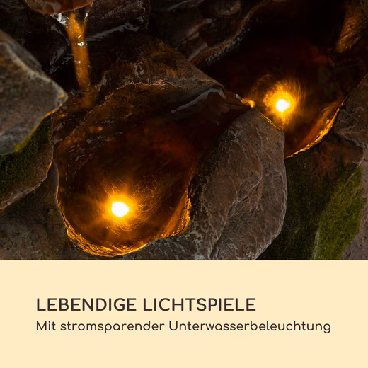 The sophisticated design of the Blumfeldt Mystic Tree solar fountain is modeled after a real tree trunk, through which fresh water flows dynamically. The staggered, overlapping basins create a harmonious water feature. For an especially warm atmosphere, the simulated waterfall is equipped with LED lights, which also create beautiful light displays.
