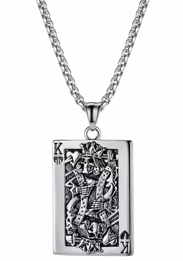 • Stainless steel necklace with cool vintage playing card SKULL design