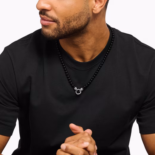 - Bead necklace made of blackened 925 silver, which embodies the power of black obsidian and stands for fine craftsmanship