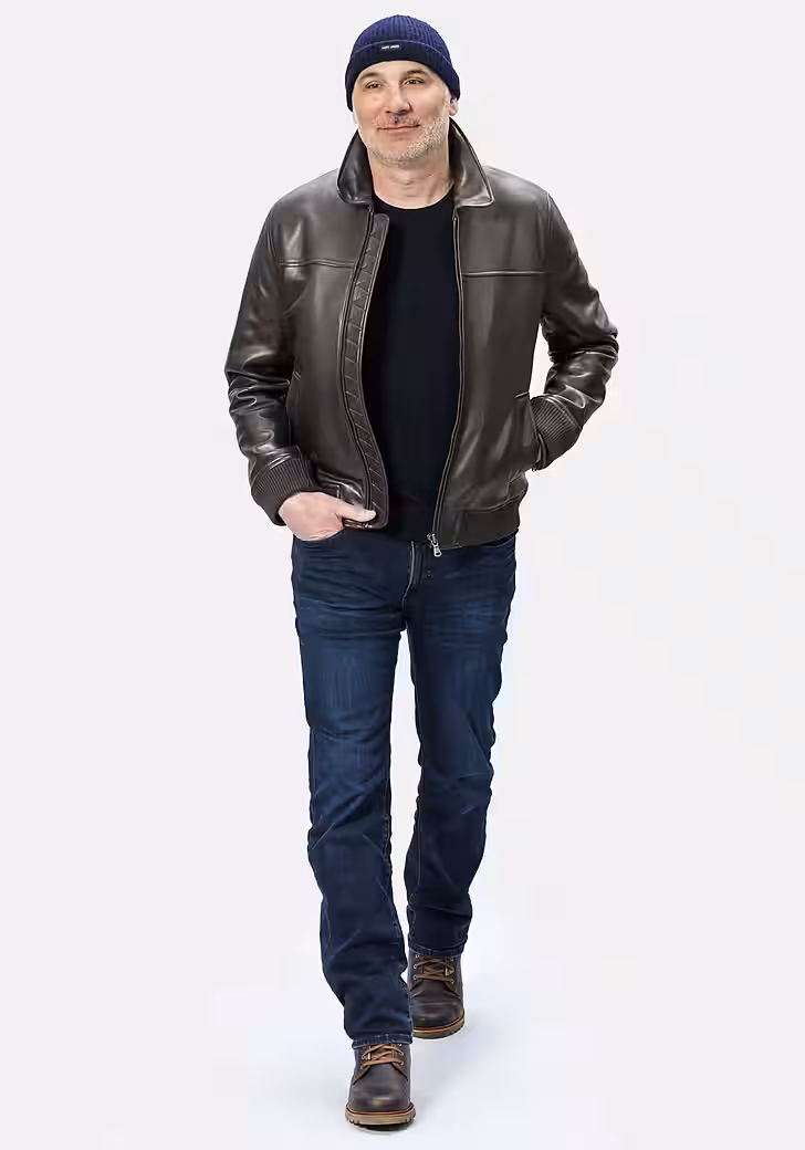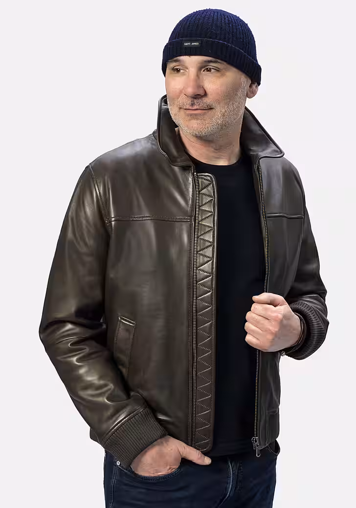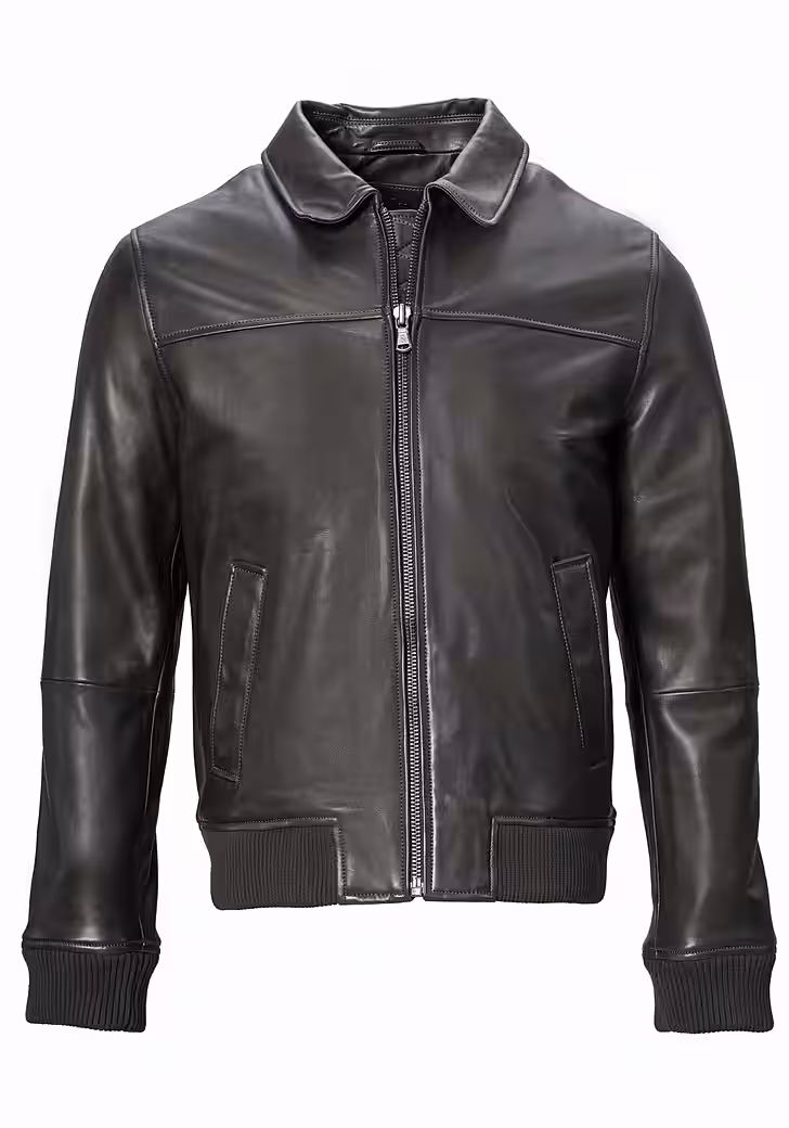 This high-quality leather college jacket made from the finest lambskin nappa leather impresses with its sporty yet elegant look. Elegant cotton knit trims at the neck, sleeves, and hem ensure a perfect fit and comfort. Side welt pockets with snap fasteners offer functionality, and the inner lining completes the comfort. A stylish companion for discerning men with a sense of quality.