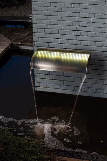 The patented Nevada waterfall elements are elegant and unique. LED lighting provides additional visual effects. They are suitable for both embedding in masonry and wall mounting. When used with a pond pump, they create a wide film of water that glides almost silently back into the basin. Two connection options are available: a 1″ female thread and a 25 mm hose connection on the back and underside. Screws and wall plugs are included. A fantastic set that will greatly enhance any garden or patio.